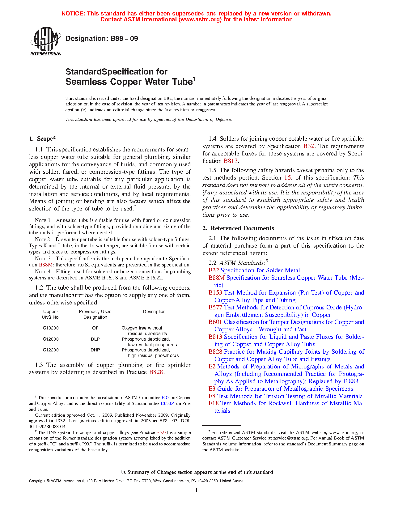 1.4 Solders for joining copper potable water or fire sprinkler systems are covered by Specification B32. The requirements for acceptable fluxes for these systems are covered by Specification B813.