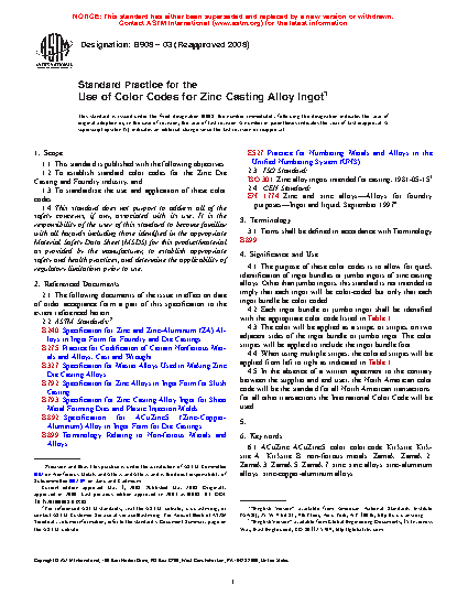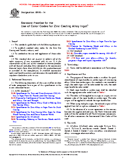 4.1 The purpose of these color codes is to allow for quick identification of ingot bundles or jumbo ingots of zinc casting alloys. Other than jumbo ingots, this standard is not intended to imply that each ingot will be color coded but only that each ingot bundle be color coded.