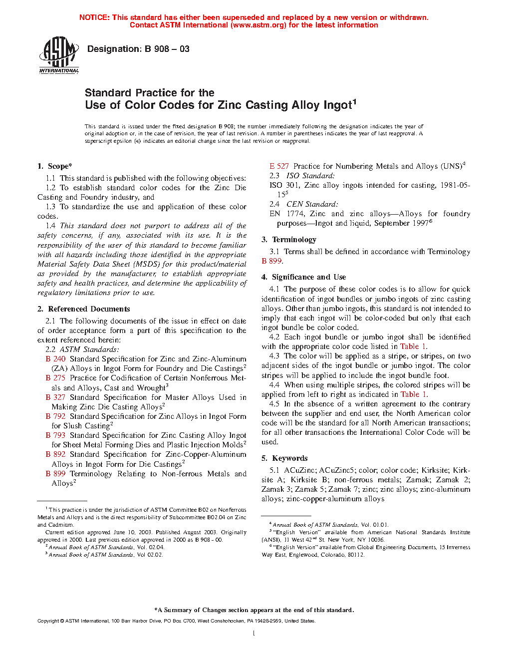 4.2 Each ingot bundle or jumbo ingot shall be identified with the appropriate color code listed in Table 1.