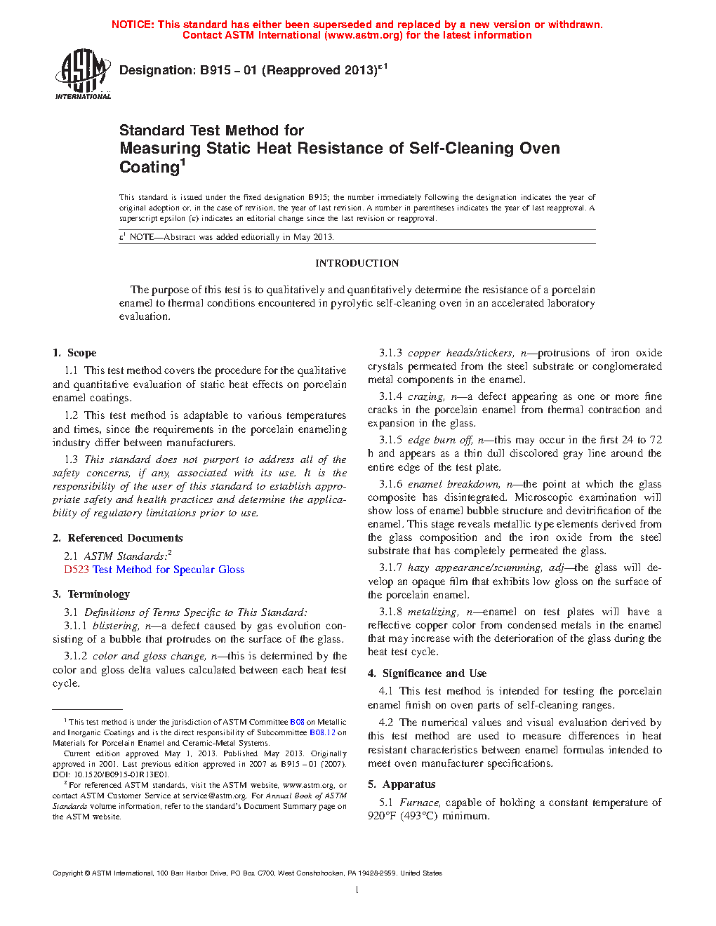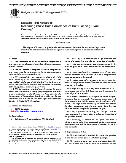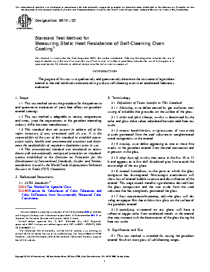 4.1 This test method is intended for testing the porcelain enamel finish on oven parts of self-cleaning ranges.
