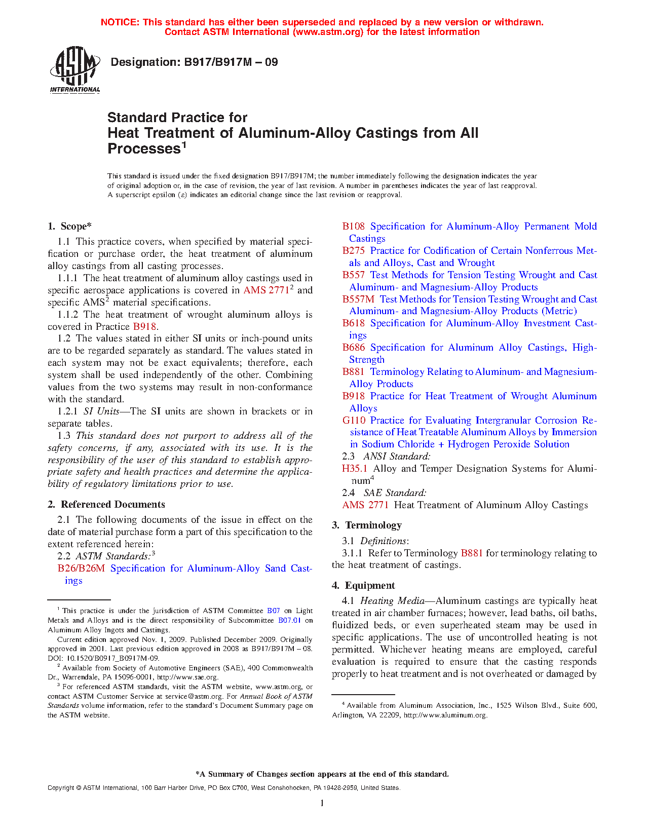 1.1.1 The heat treatment of aluminum alloy castings used in specific aerospace applications is covered in AMS 2771 and specific AMS material specifications.