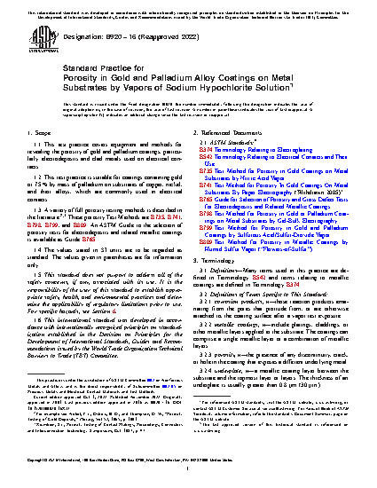 1.1 This test practice covers equipment and methods for revealing the porosity of gold and palladium coatings, particularly electrodeposits and clad metals used on electrical contacts.