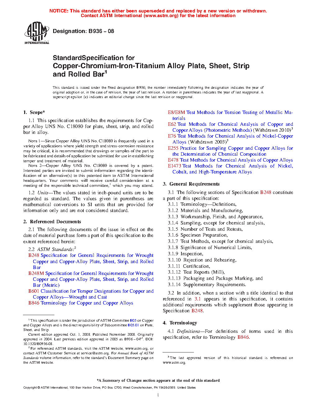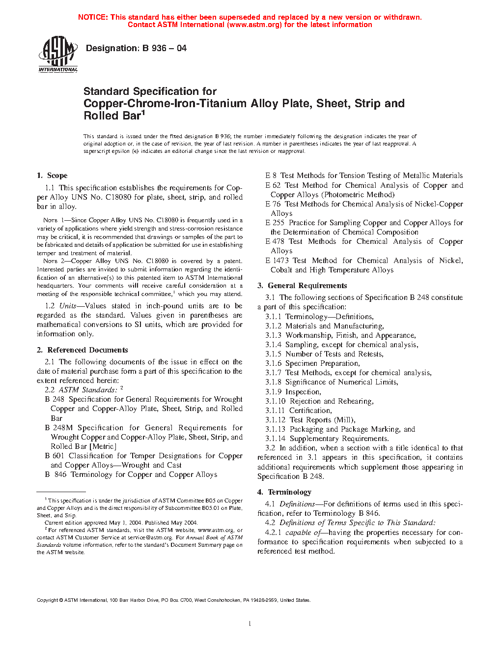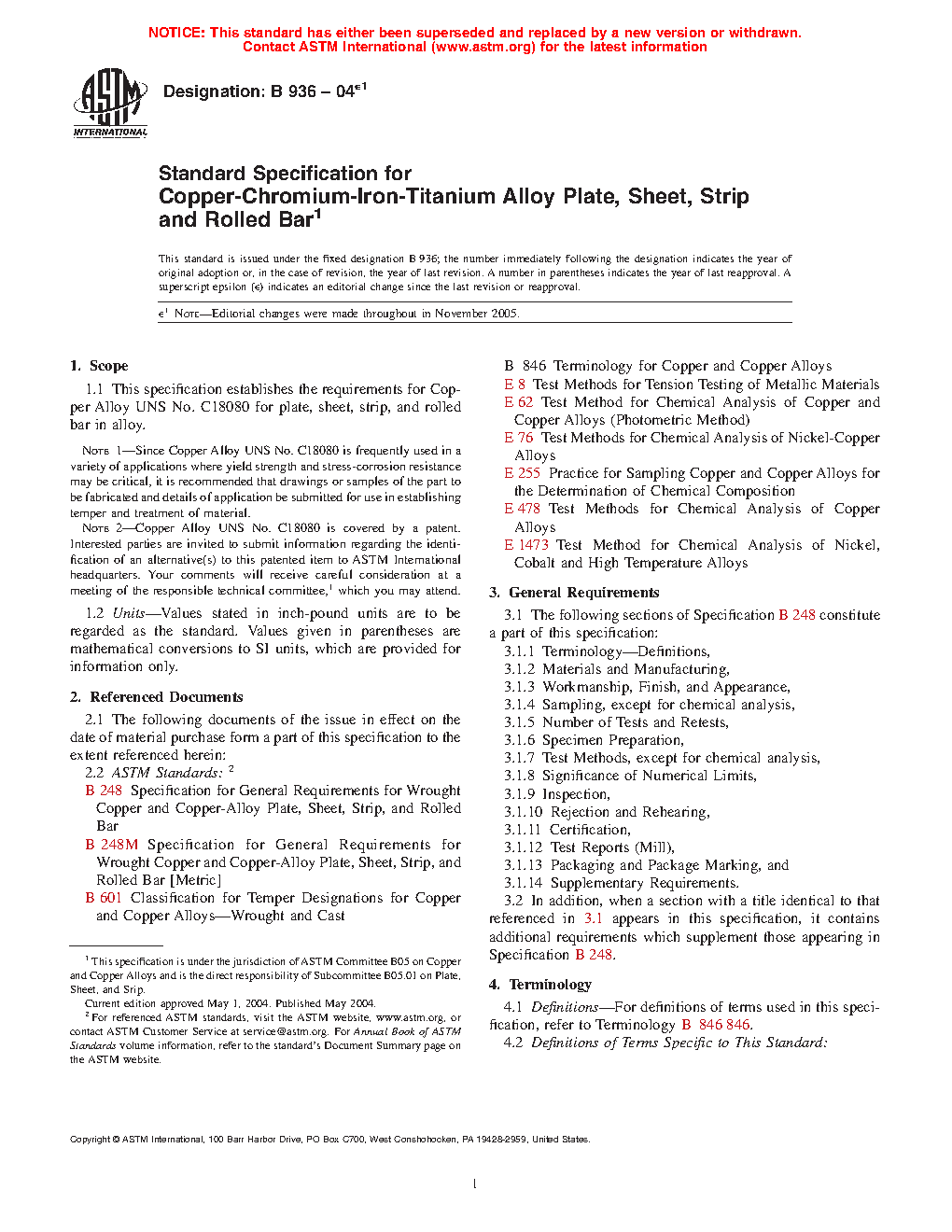 Note 2: Copper Alloy UNS No. C18080 is covered by a patent. Interested parties are invited to submit information regarding the identification of an alternative(s) to this patented item to ASTM International headquarters. Your comments will receive careful consideration at a meeting of the responsible technical committee,1 which you may attend.