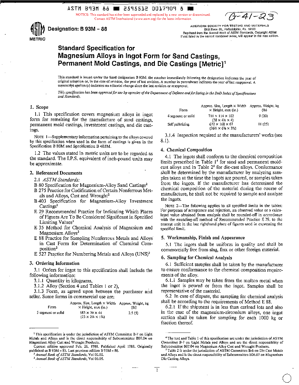 ASTM B93M-88