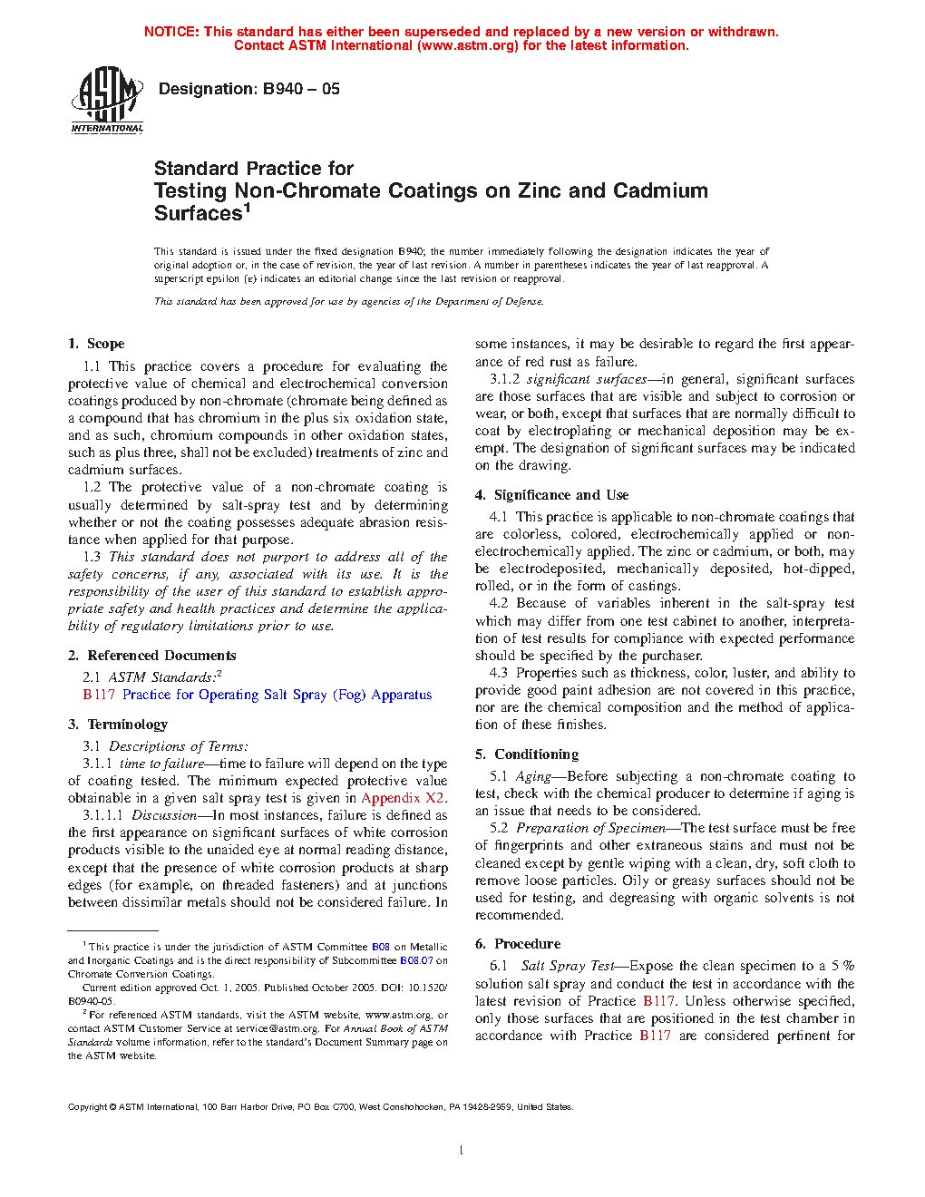1.2 The protective value of a non-chromate coating is usually determined by salt-spray test and by determining whether or not the coating possesses adequate abrasion resistance when applied for that purpose.