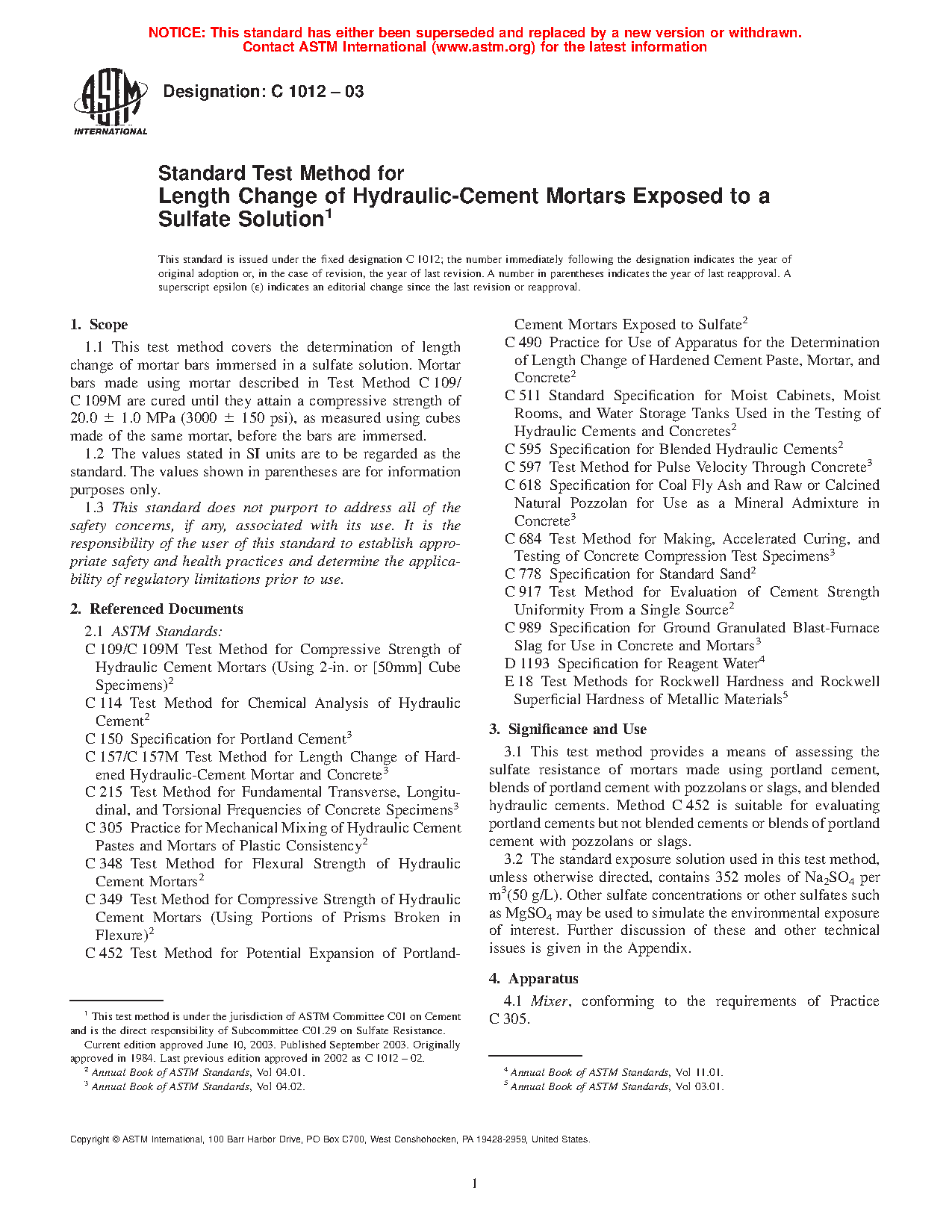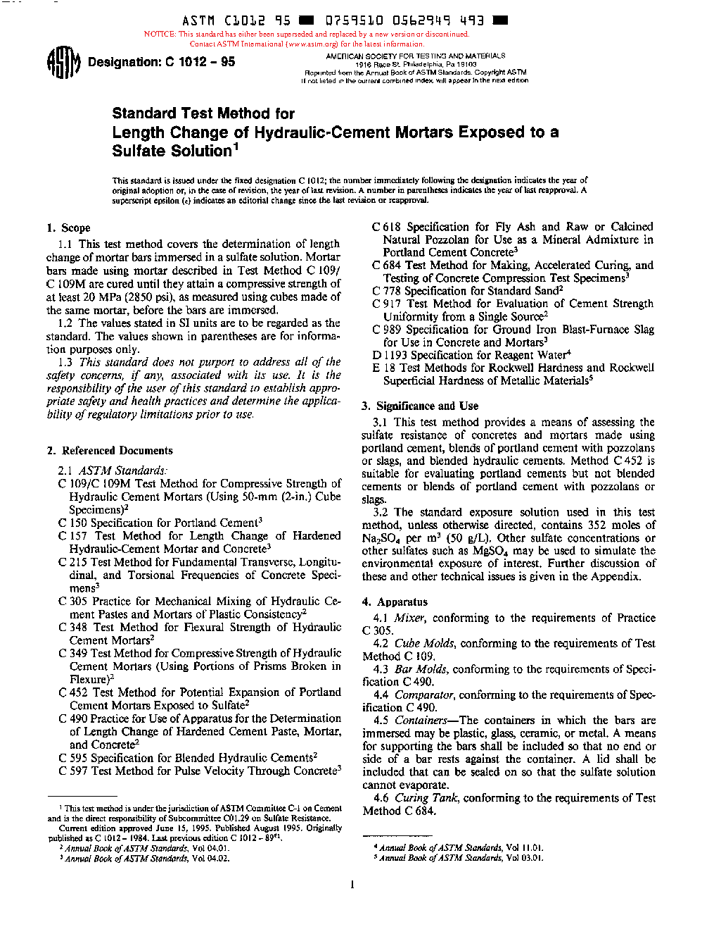 Standard Test Method for Length Change of Hydraulic-Cement Mortars Exposed to a Sulfate Solution
