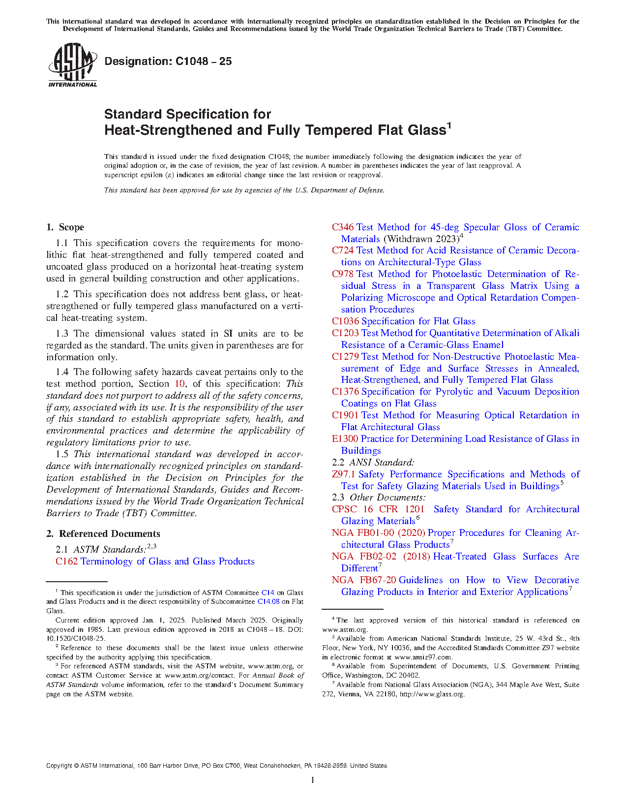 1.1 This specification covers the requirements for monolithic flat heat-strengthened and fully tempered coated and uncoated glass produced on a horizontal tempering system used in general building construction and other applications.