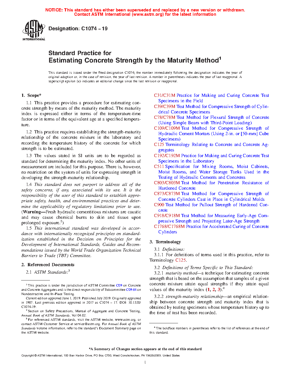 1.3 The values stated in SI units are to be regarded as standard for determining the maturity index. No other units of measurement are included for this purpose. There is, however, no restriction on the system of units for expressing strength in developing the strength-maturity relationship.