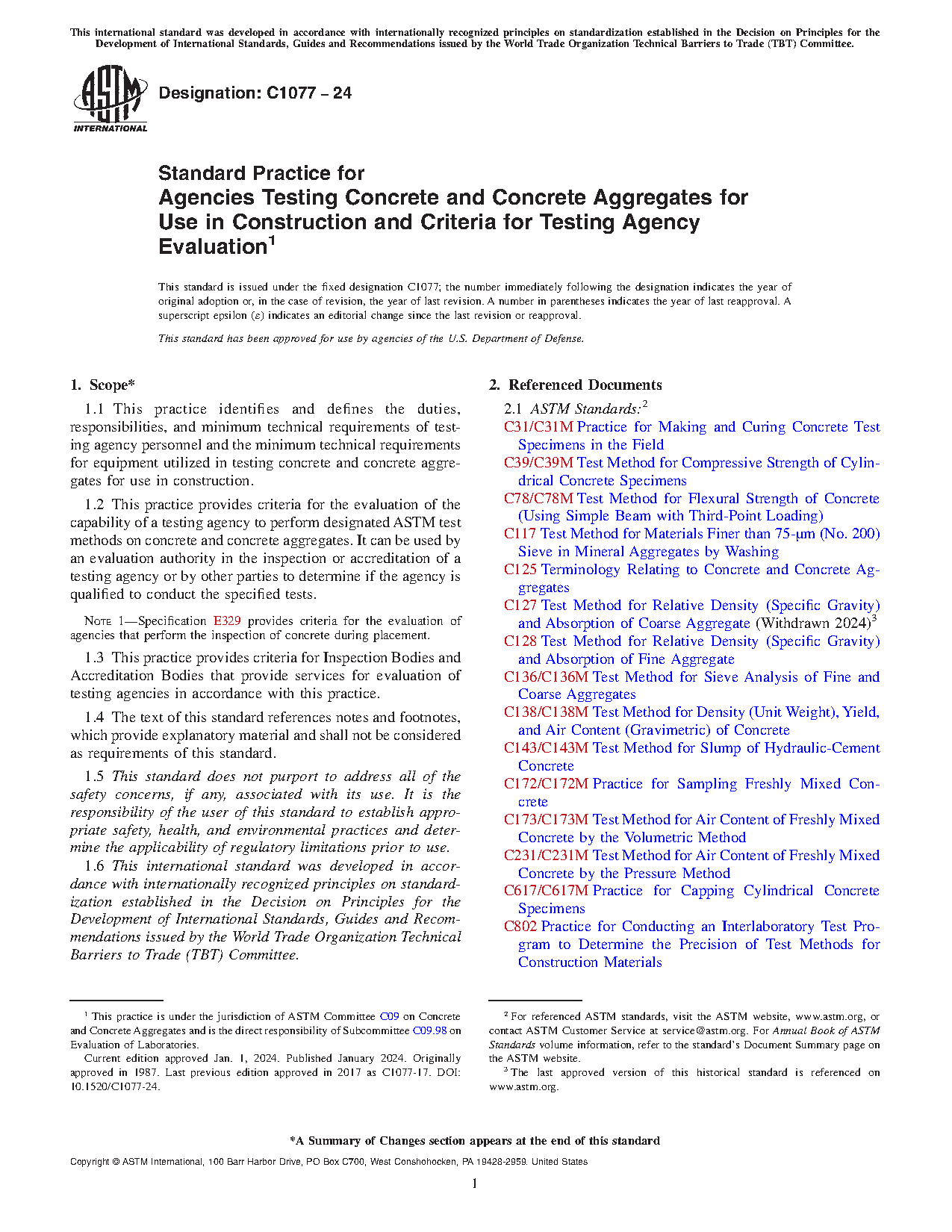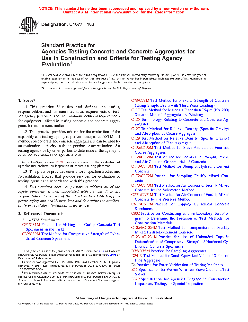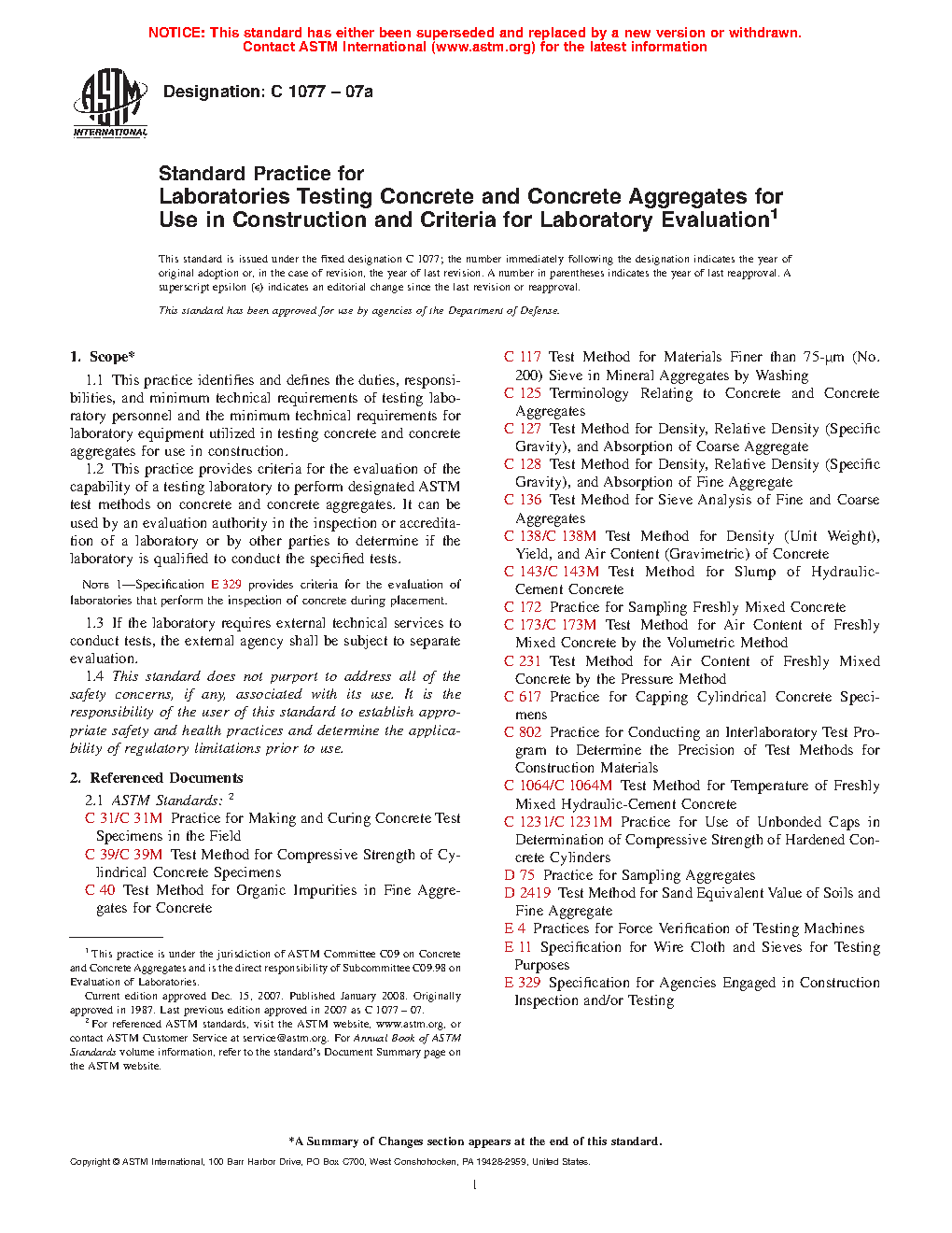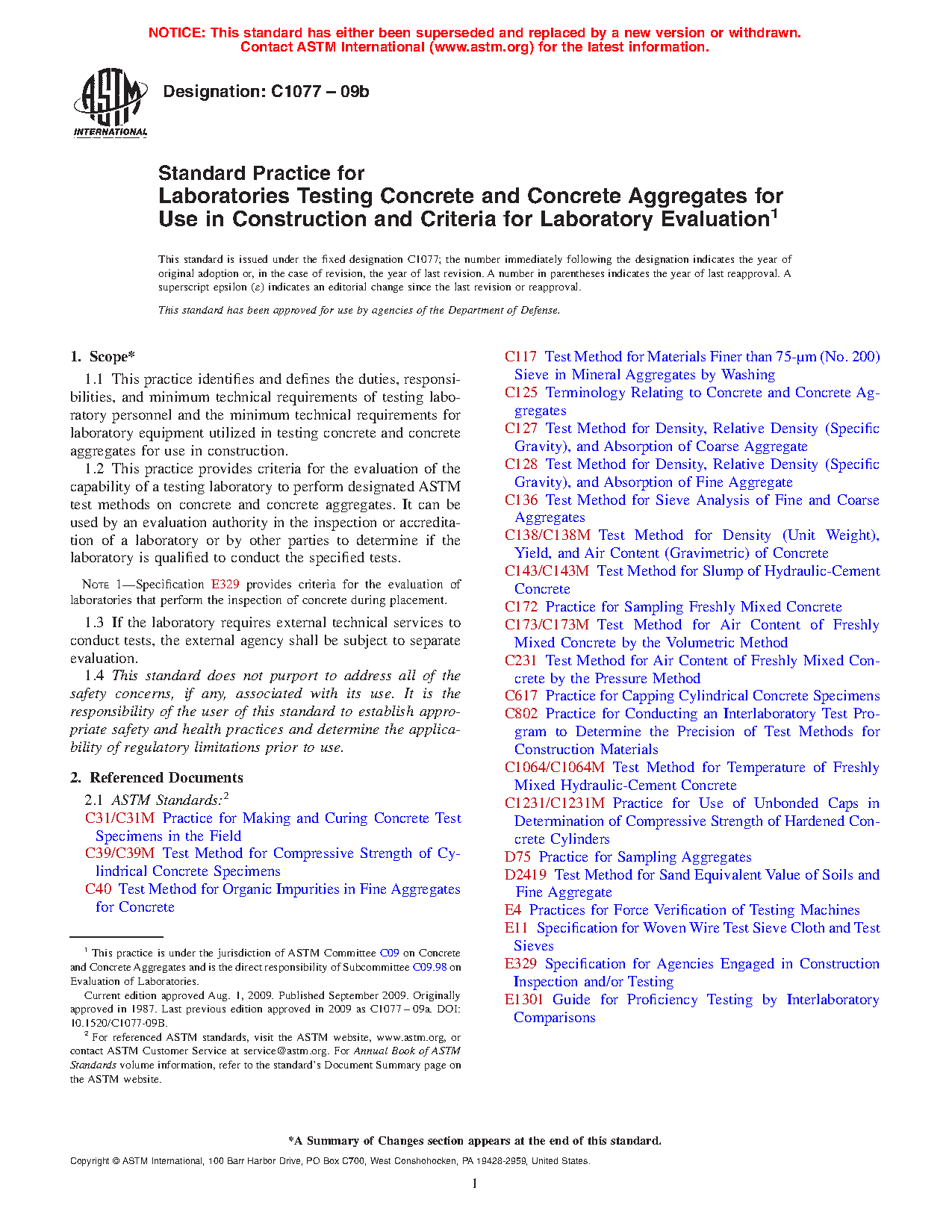 1.2 This practice provides criteria for the evaluation of the capability of a testing agency to perform designated ASTM test methods on concrete and concrete aggregates. It can be used by an evaluation authority in the inspection or accreditation of a testing agency or by other parties to determine if the agency is qualified to conduct the specified tests.