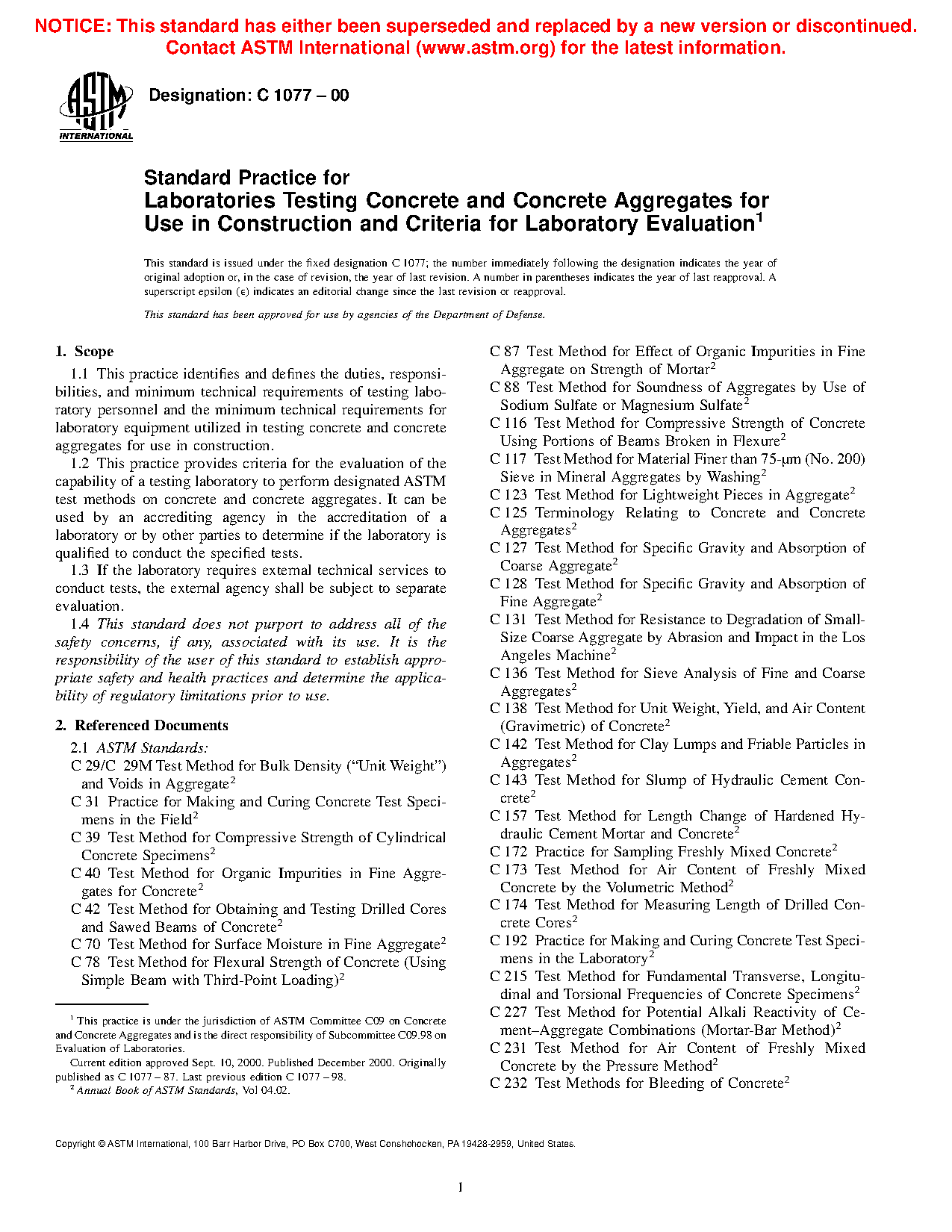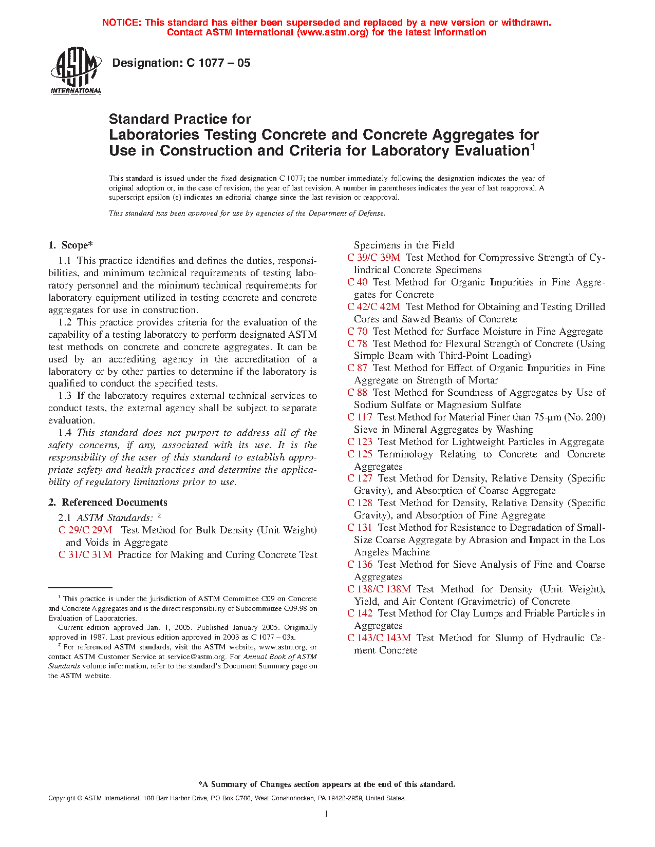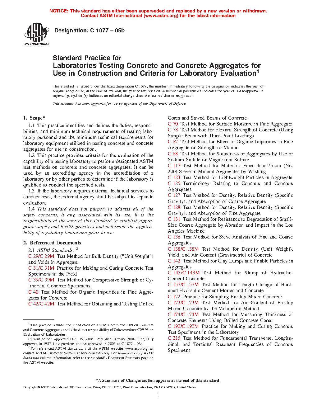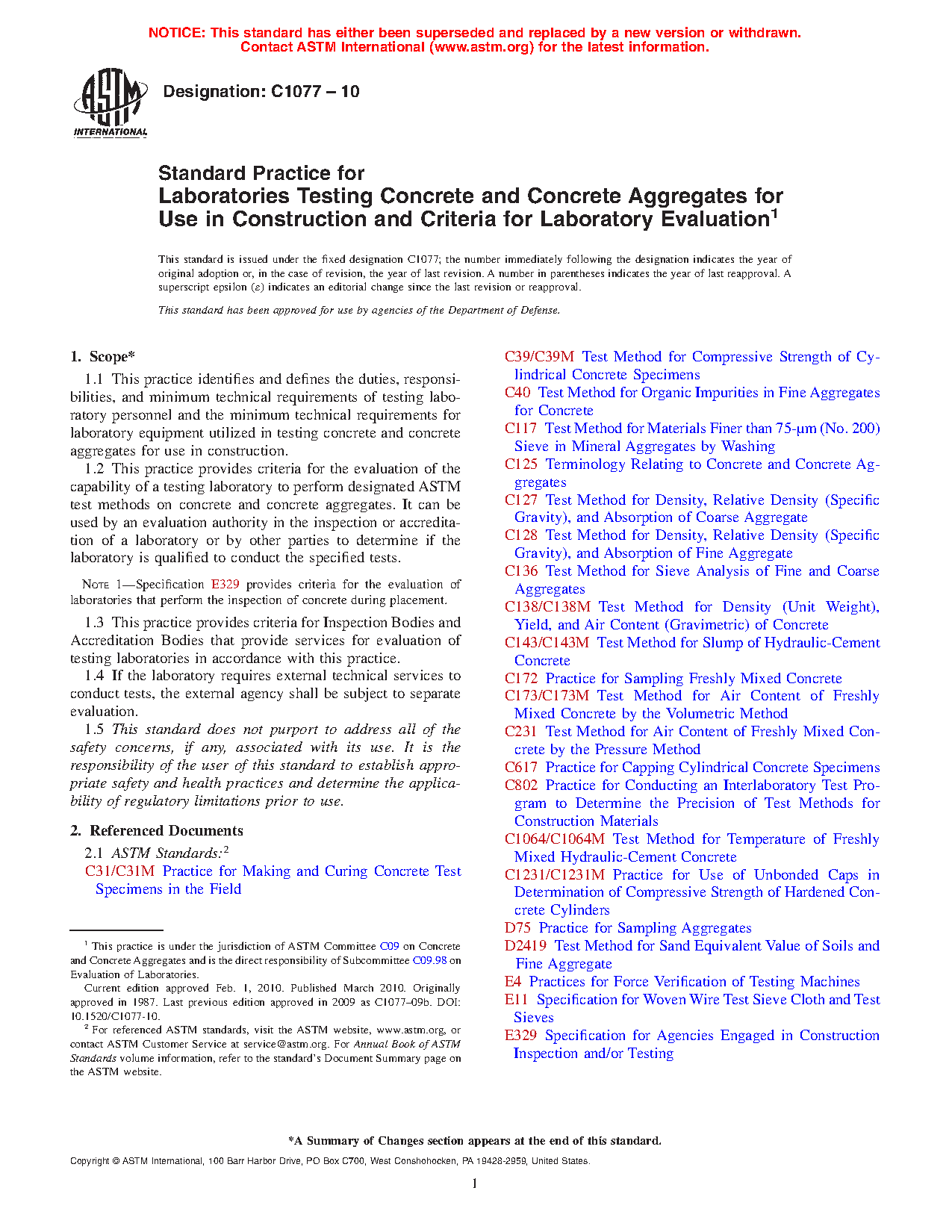 1.2 This practice provides criteria for the evaluation of the capability of a testing agency to perform designated ASTM test methods on concrete and concrete aggregates. It can be used by an evaluation authority in the inspection or accreditation of a testing agency or by other parties to determine if the agency is qualified to conduct the specified tests.