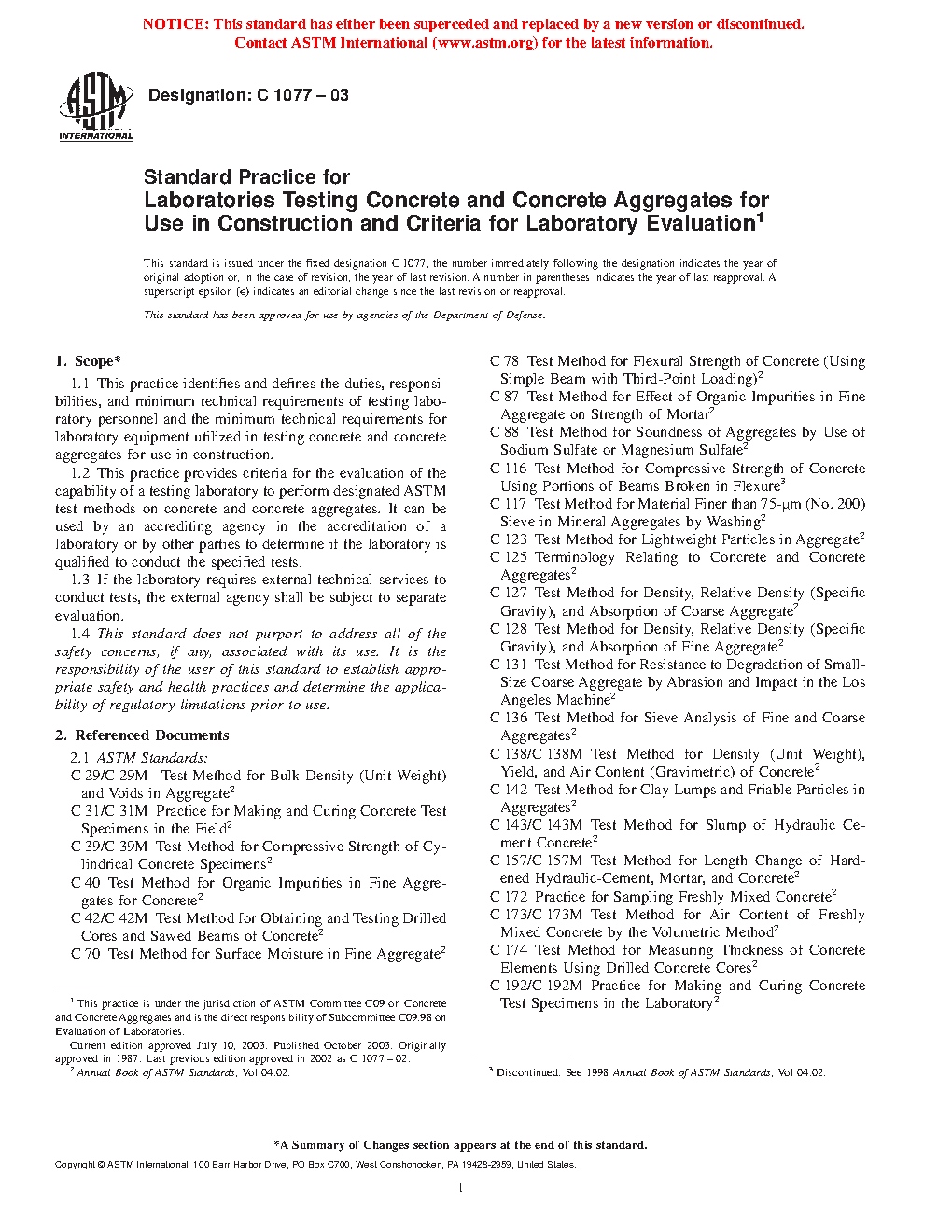 Note 1—Specification E329 provides criteria for the evaluation of agencies that perform the inspection of concrete during placement.