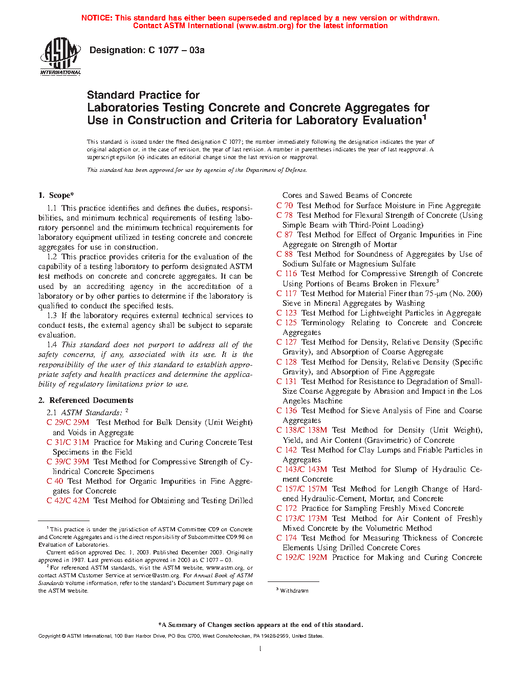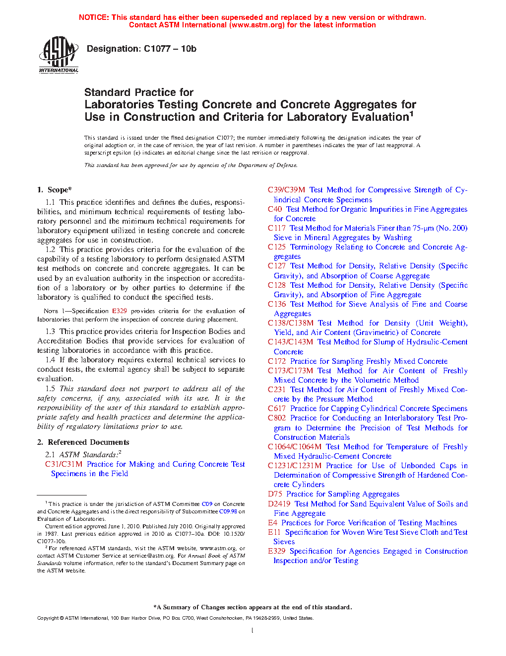 1.2 This practice provides criteria for the evaluation of the capability of a testing agency to perform designated ASTM test methods on concrete and concrete aggregates. It can be used by an evaluation authority in the inspection or accreditation of a testing agency or by other parties to determine if the agency is qualified to conduct the specified tests.