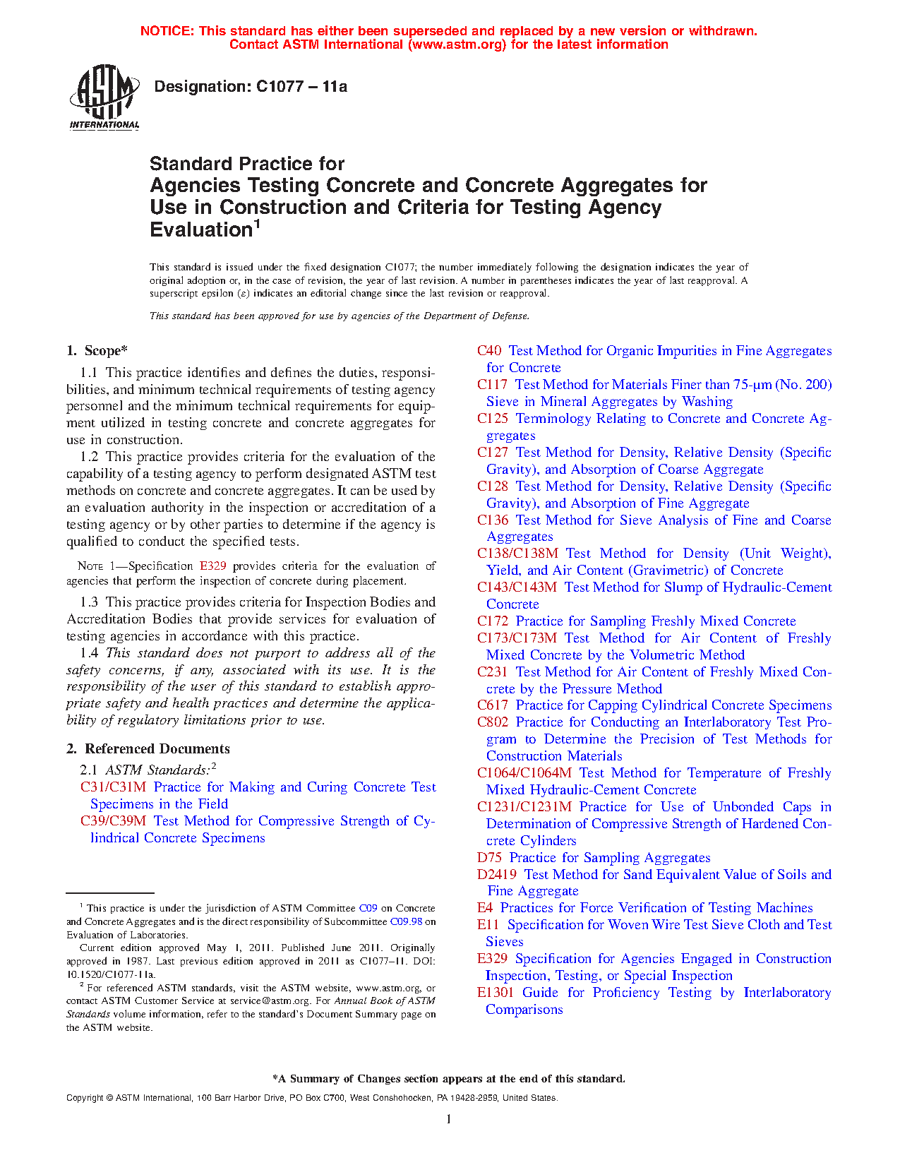 Note 1: Specification E329 provides criteria for the evaluation of agencies that perform the inspection of concrete during placement.