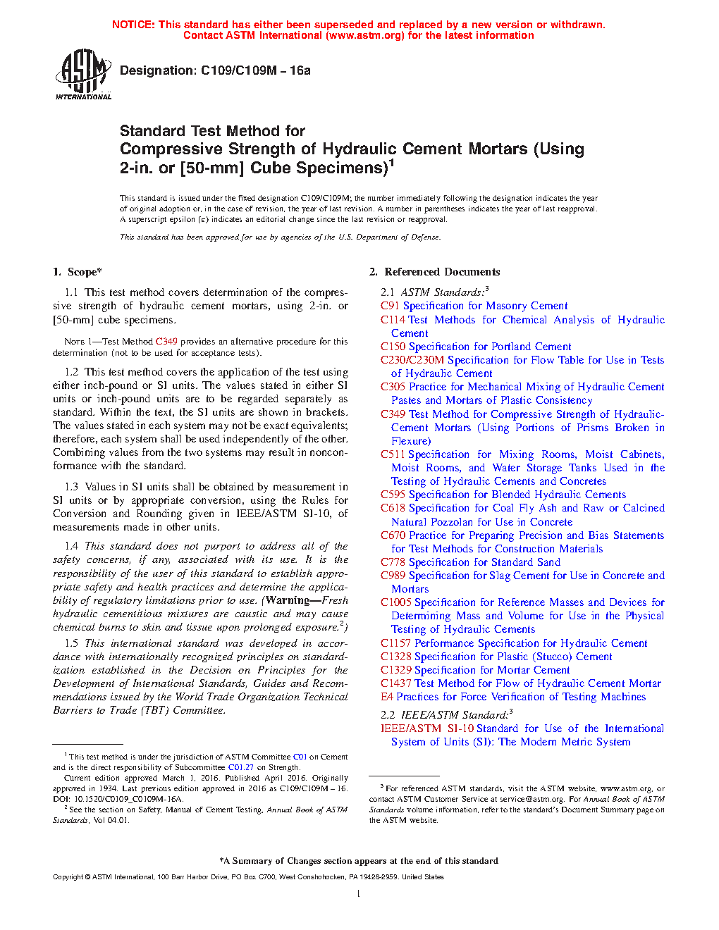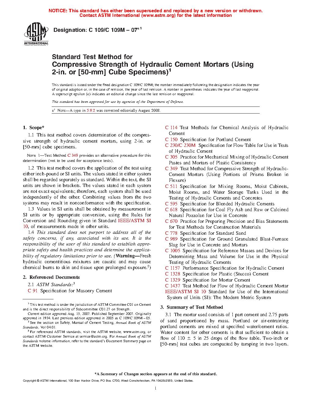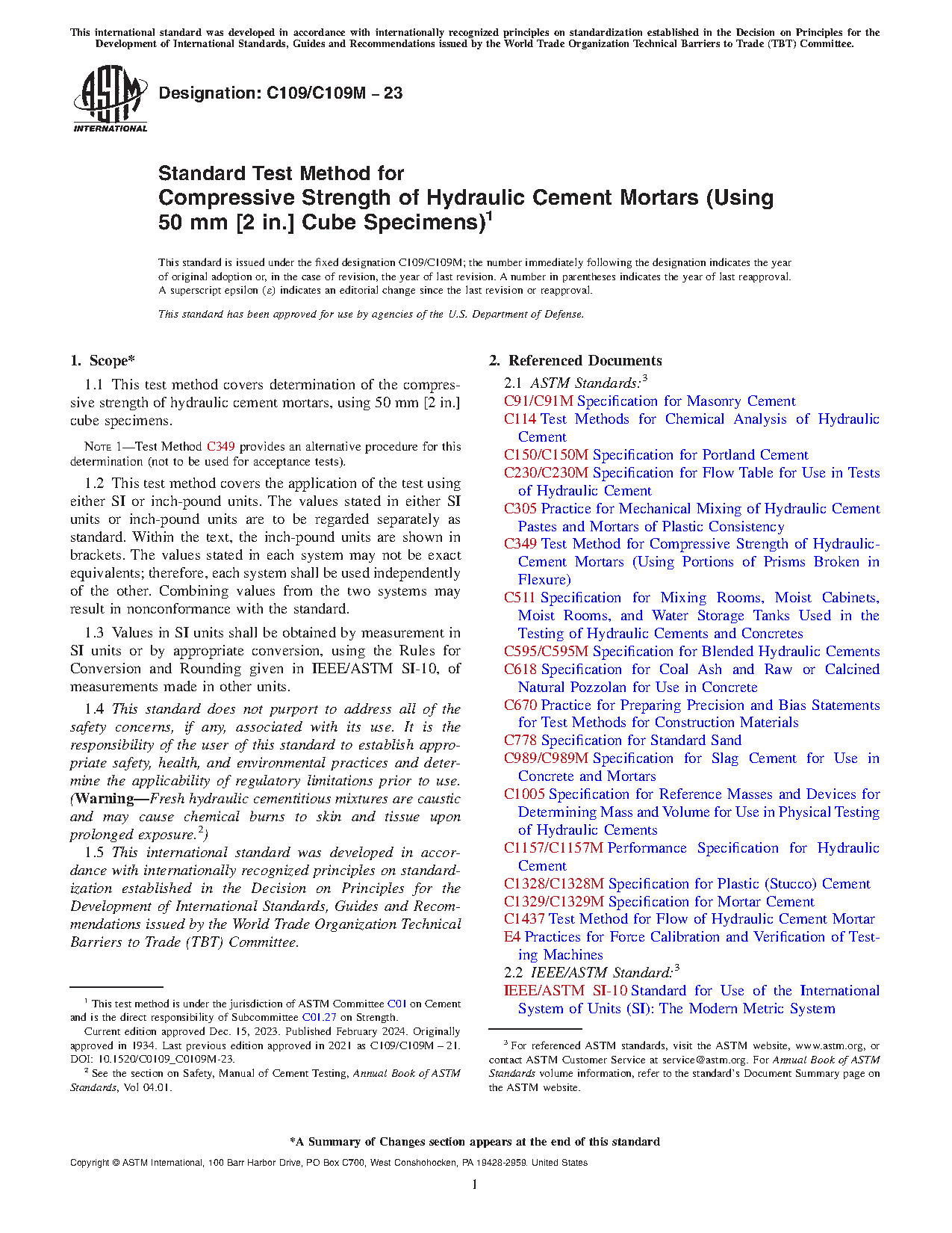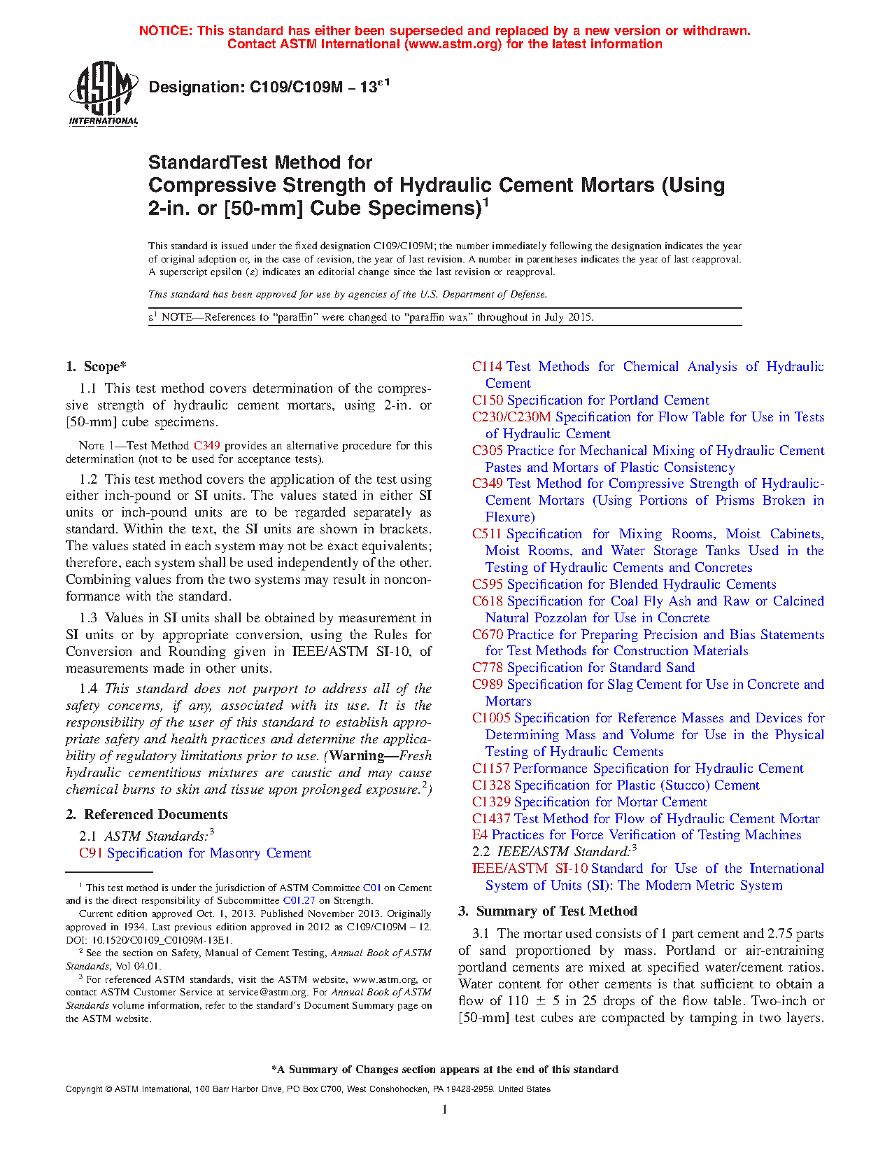 1.1 This test method covers determination of the compressive strength of hydraulic cement mortars, using 2-in. or [50-mm] cube specimens.