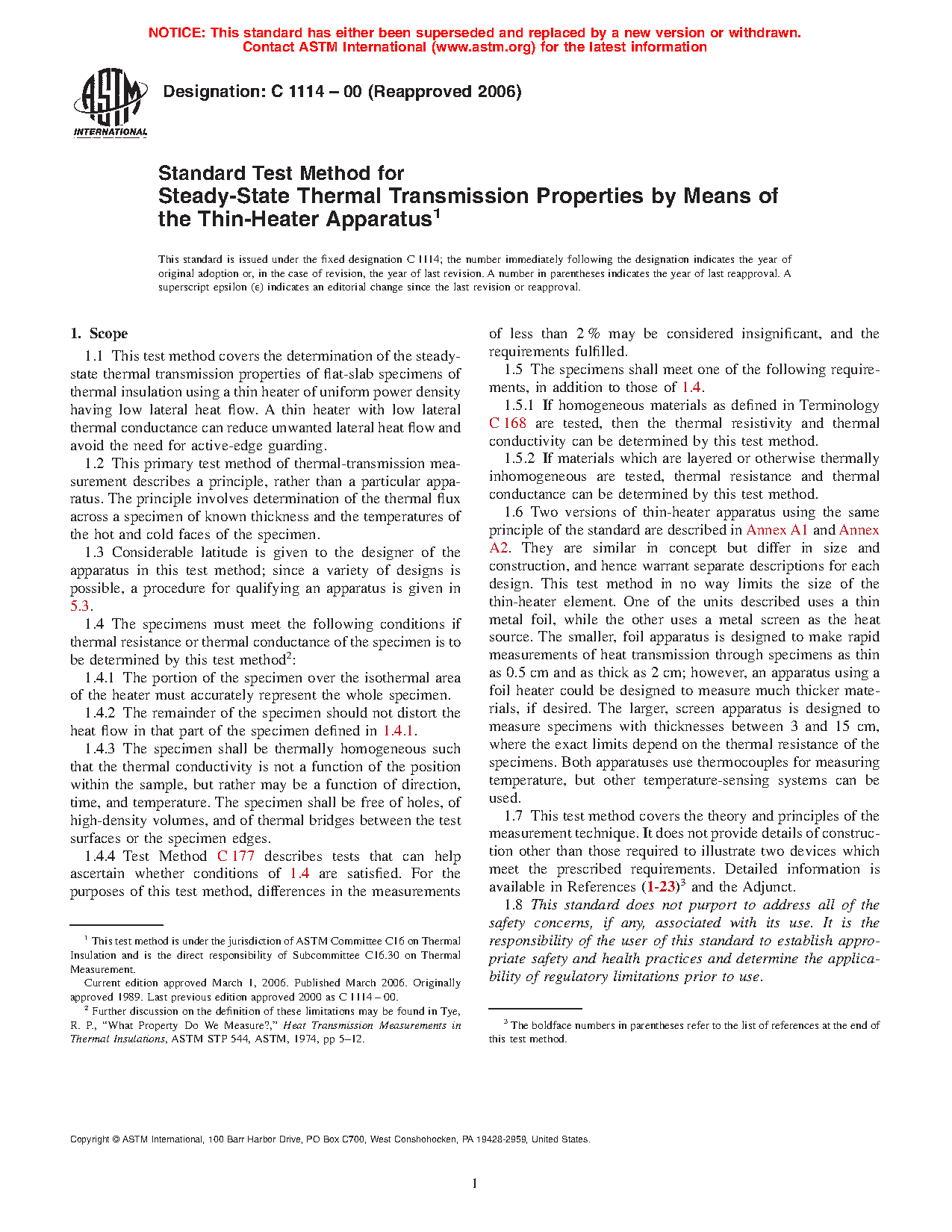 1.4 The specimens must meet the following conditions if thermal resistance or thermal conductance of the specimen is to be determined by this test method2: