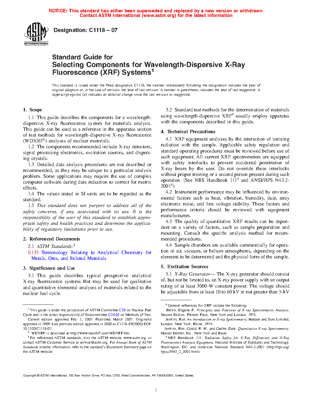 1.1 This guide describes the components for a wavelength-dispersive X-ray fluorescence system for materials analysis. This guide can be used as a reference in the apparatus section of test methods for wavelength-dispersive X-ray fluorescence (XRF) analyses of nuclear materials.