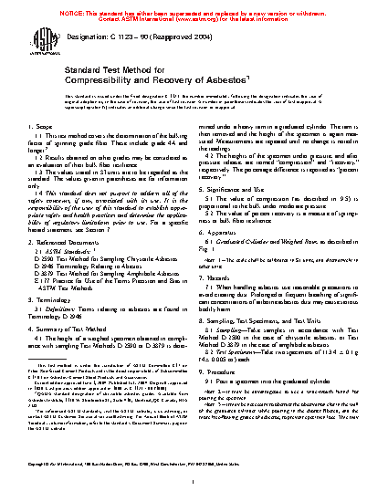 Standard Test Method for Compressibility and Recovery of Asbestos