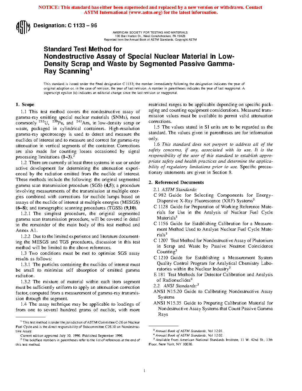 1.2 There are currently several systems in use or under development for determining the attenuation corrections for NDA of radioisotopic materials (4-8). A related technique, tomographic gamma-ray scanning (TGS), is not included in this test method (9,10).