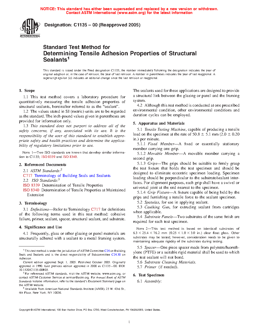 1.1 This test method covers a laboratory procedure for quantitatively measuring the tensile adhesion properties of structural sealants, hereinafter referred to as the “sealant.”