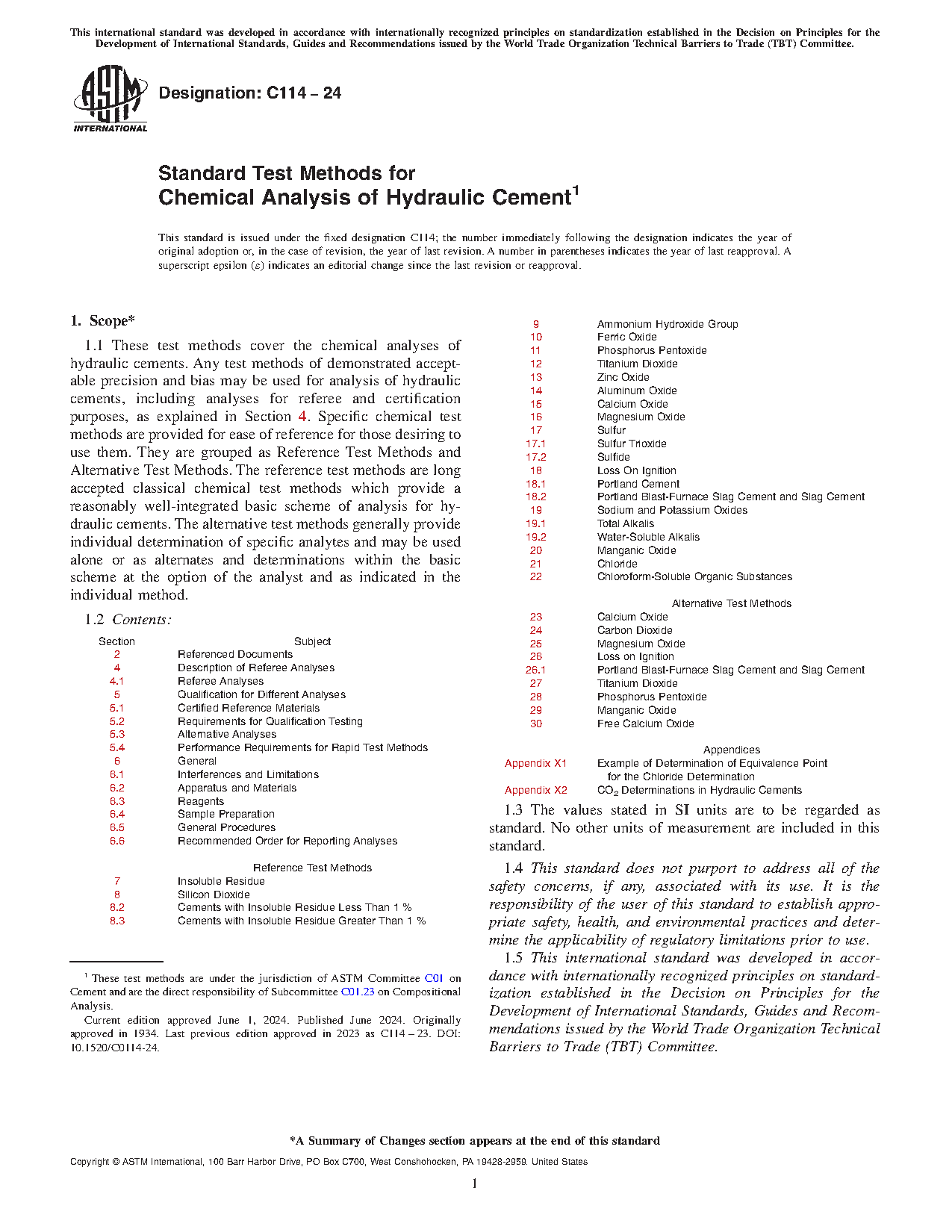 1.1 These test methods cover the chemical analyses of hydraulic cements. Any test methods of demonstrated acceptable precision and bias may be used for analysis of hydraulic cements, including analyses for referee and certification purposes, as explained in Section3 . Specific chemical test methods are provided for ease of reference for those desiring to use them. They are grouped as Reference Test Methods and Alternative Test Methods. The reference test methods are long accepted classical chemical test methods which provide a reasonably well-integrated basic scheme of analysis for hydraulic cements. The alternative test methods generally provide individual determination of specific components and may be used alone or as alternates and determinations within the basic scheme at the option of the analyst and as indicated in the individual method.