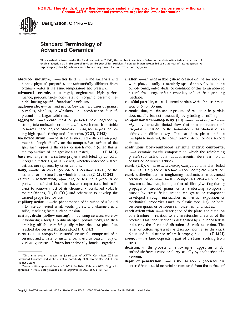 1.2 The purpose of the standard terminology is to provide a collected technical resource and reference that promotes a common understanding of the principal technical terms used within the advanced ceramics community and encourages the use of uniform terminology in specifications and reports.