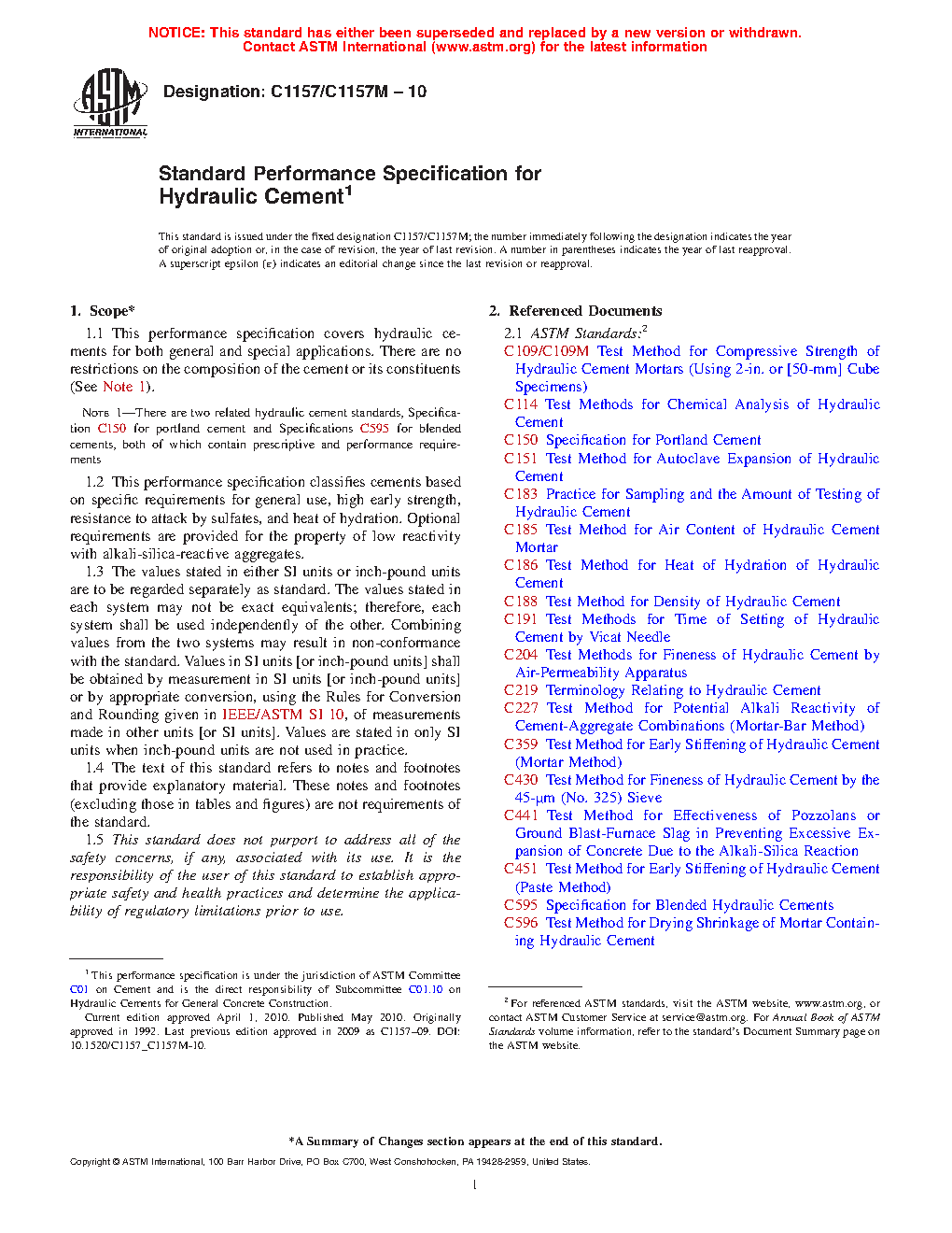 Note 1: There are two related hydraulic cement standards, Specification C150/C150M for portland cement and Specifications C595/C595M for blended cements, both of which contain prescriptive and performance requirements.