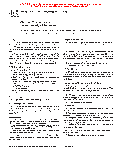 1.1 This test method covers the determination of the loose density of asbestos fiber for Groups 5 to 9, inclusive.
