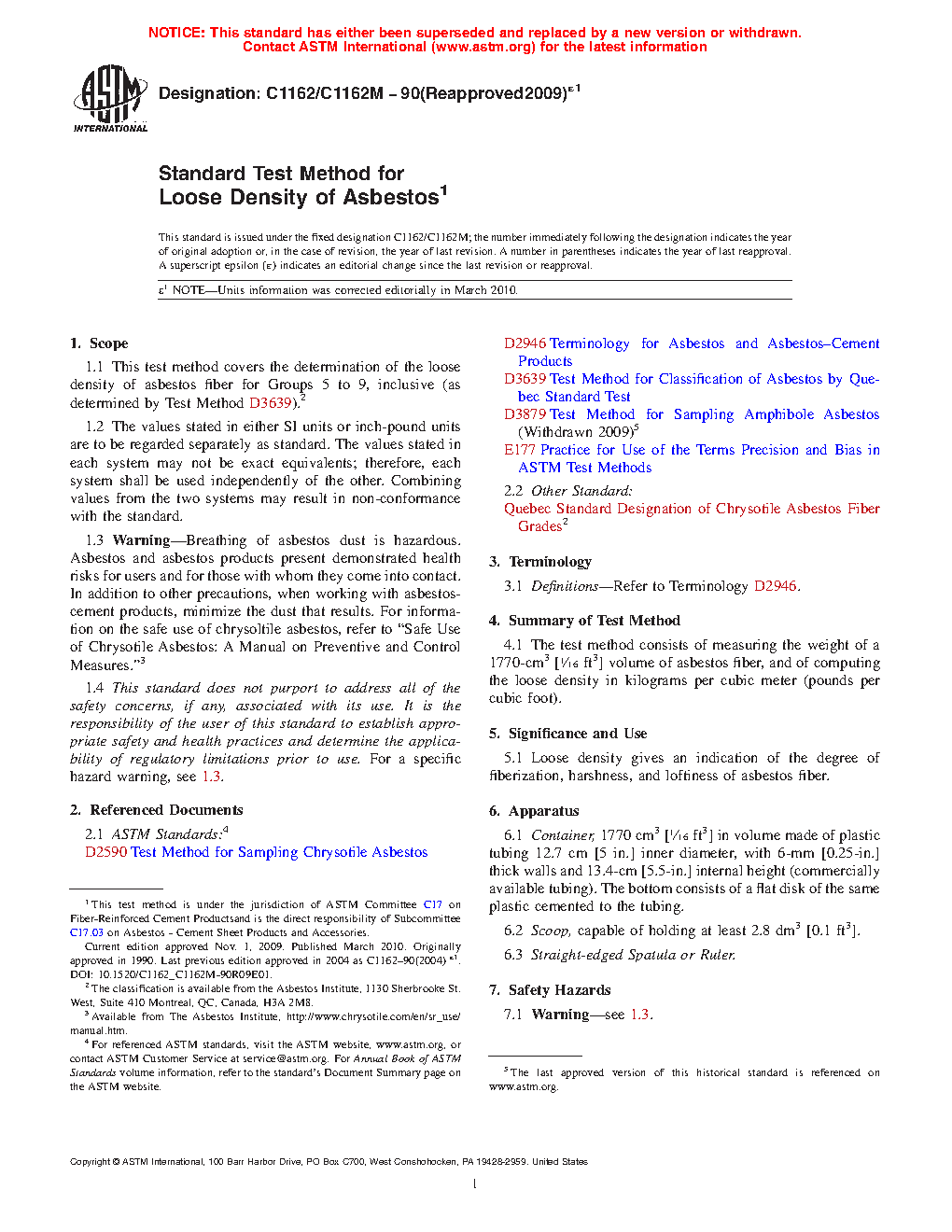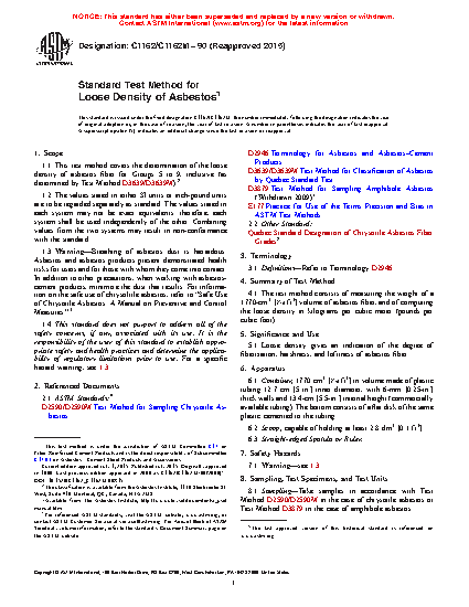 1.1 This test method covers the determination of the loose density of asbestos fiber for Groups 5 to 9, inclusive (as determined by Test Method D3639/D3639M).2