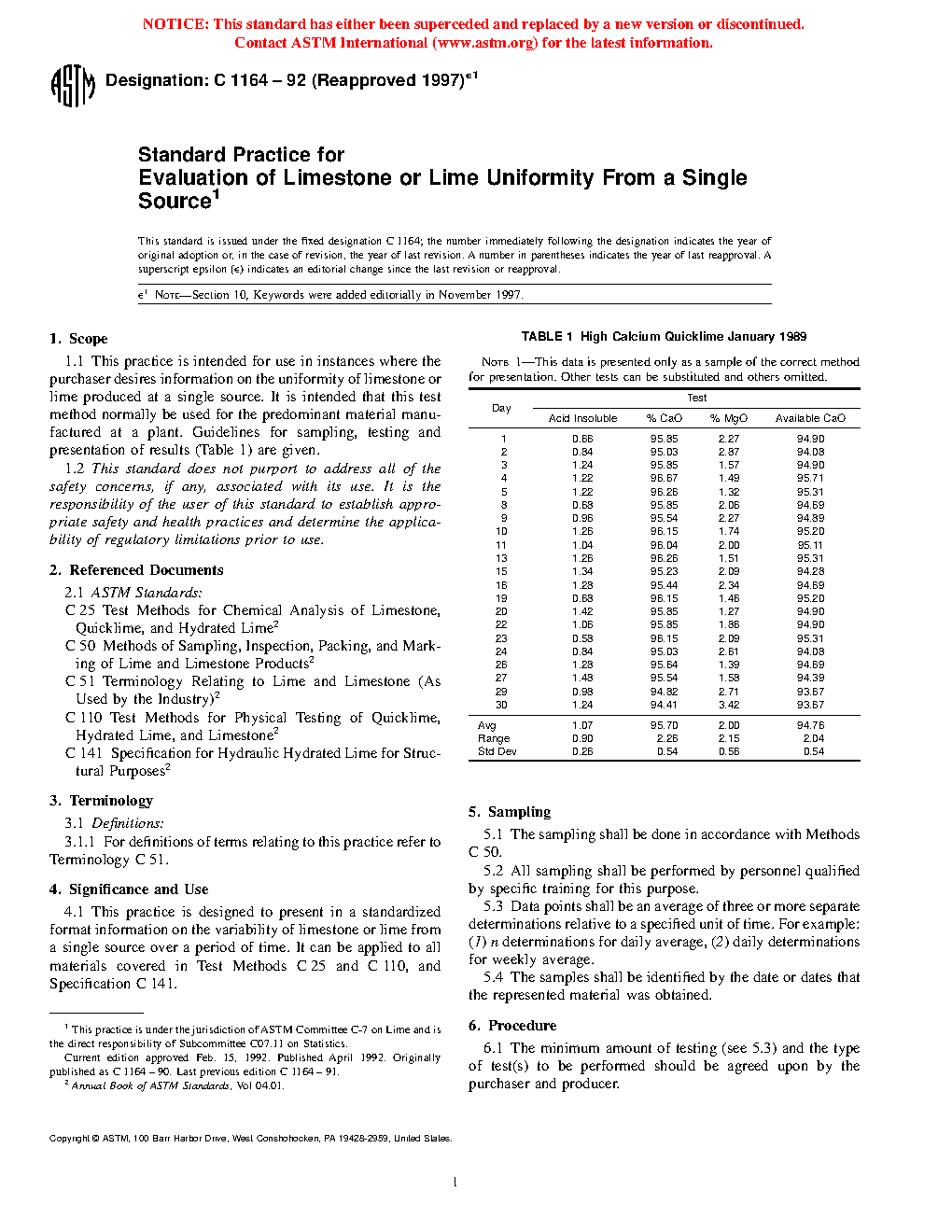 4.1 This practice is designed to present in a standardized format information on the variability of limestone or lime from a single source over a period of time. It can be applied to all materials covered in Test Methods C25, C110, C1271, and C1301, and Specification C141.