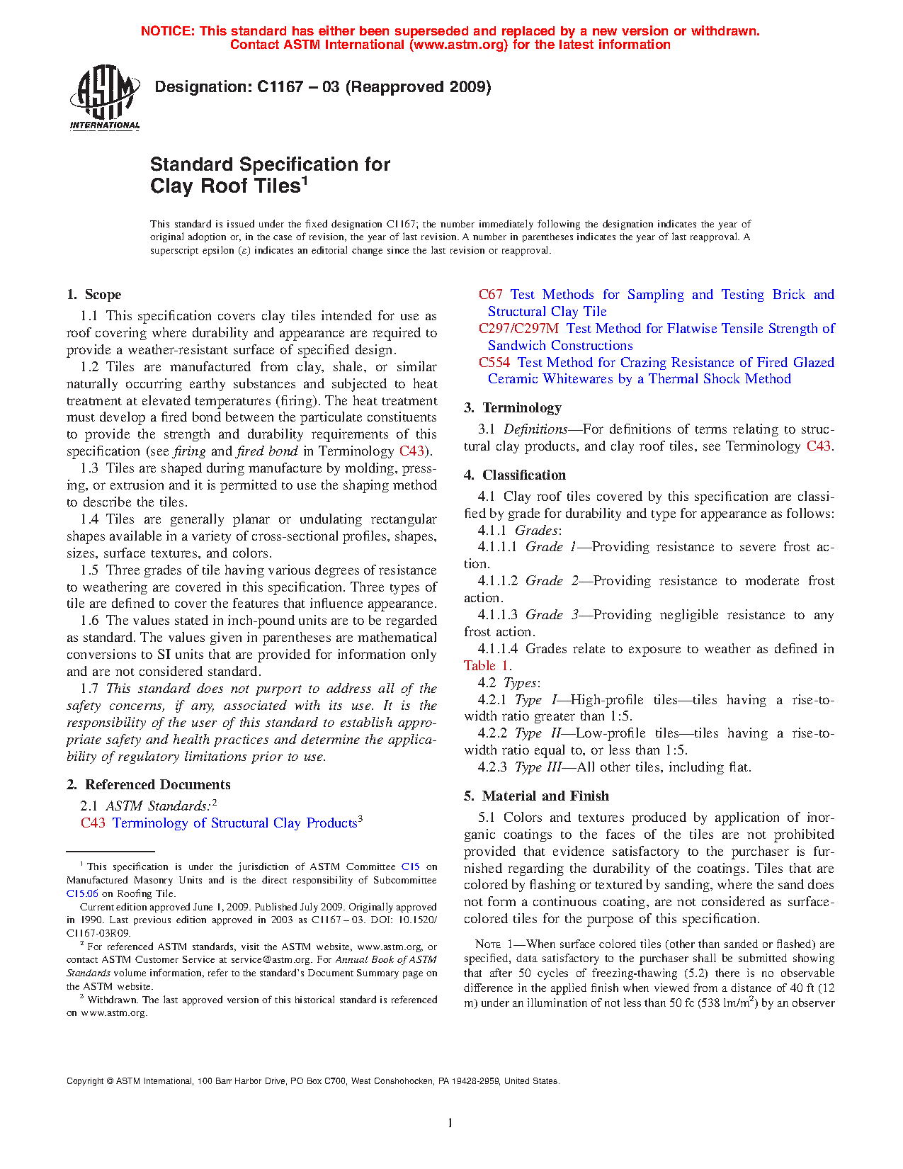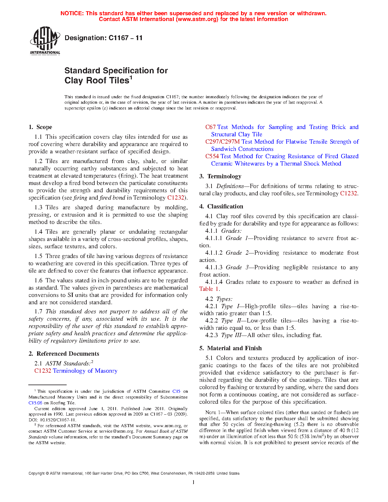 1.5 Three grades of tile having various degrees of resistance to weathering are covered in this specification. Three types of tile are defined to cover the features that influence appearance.