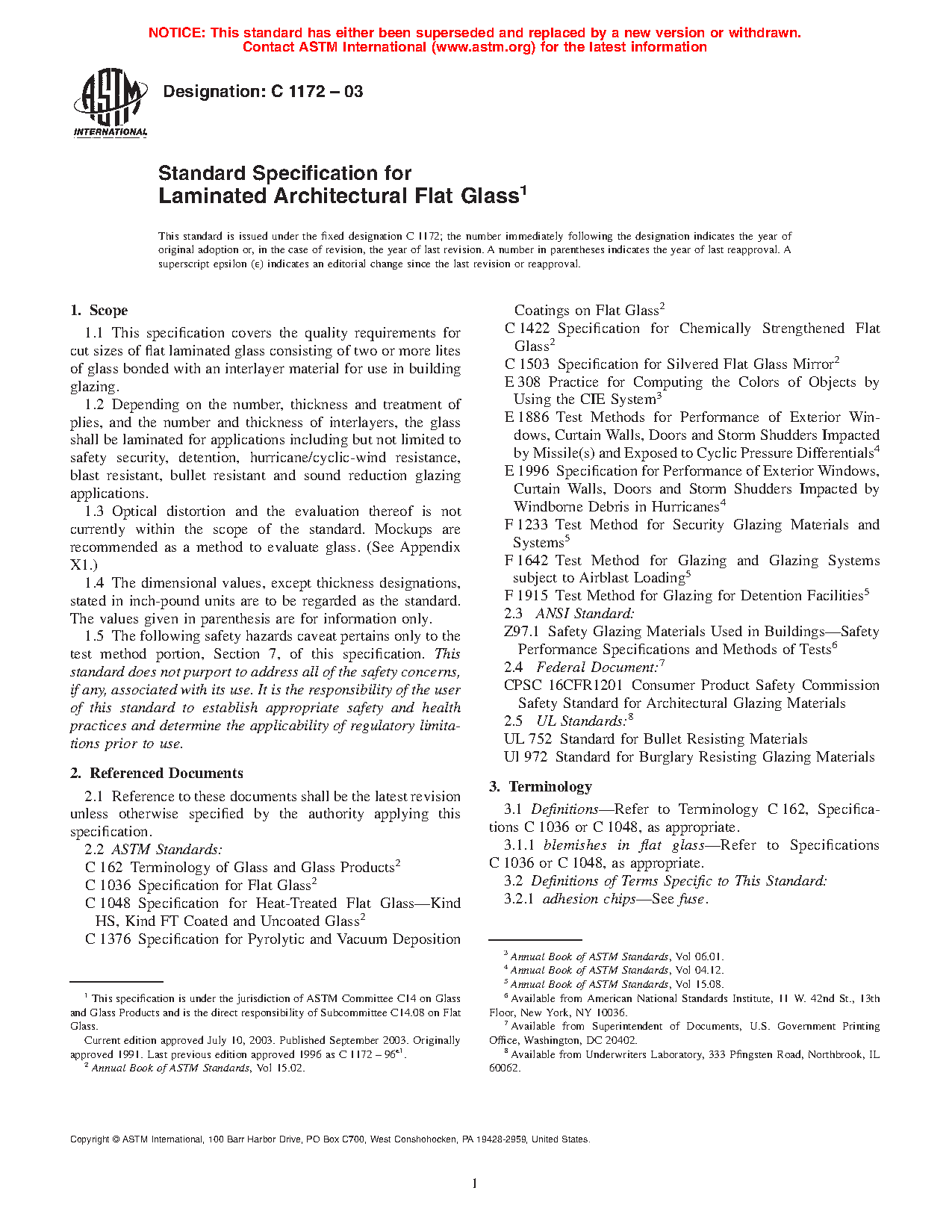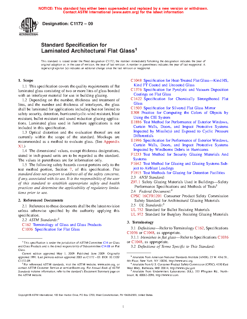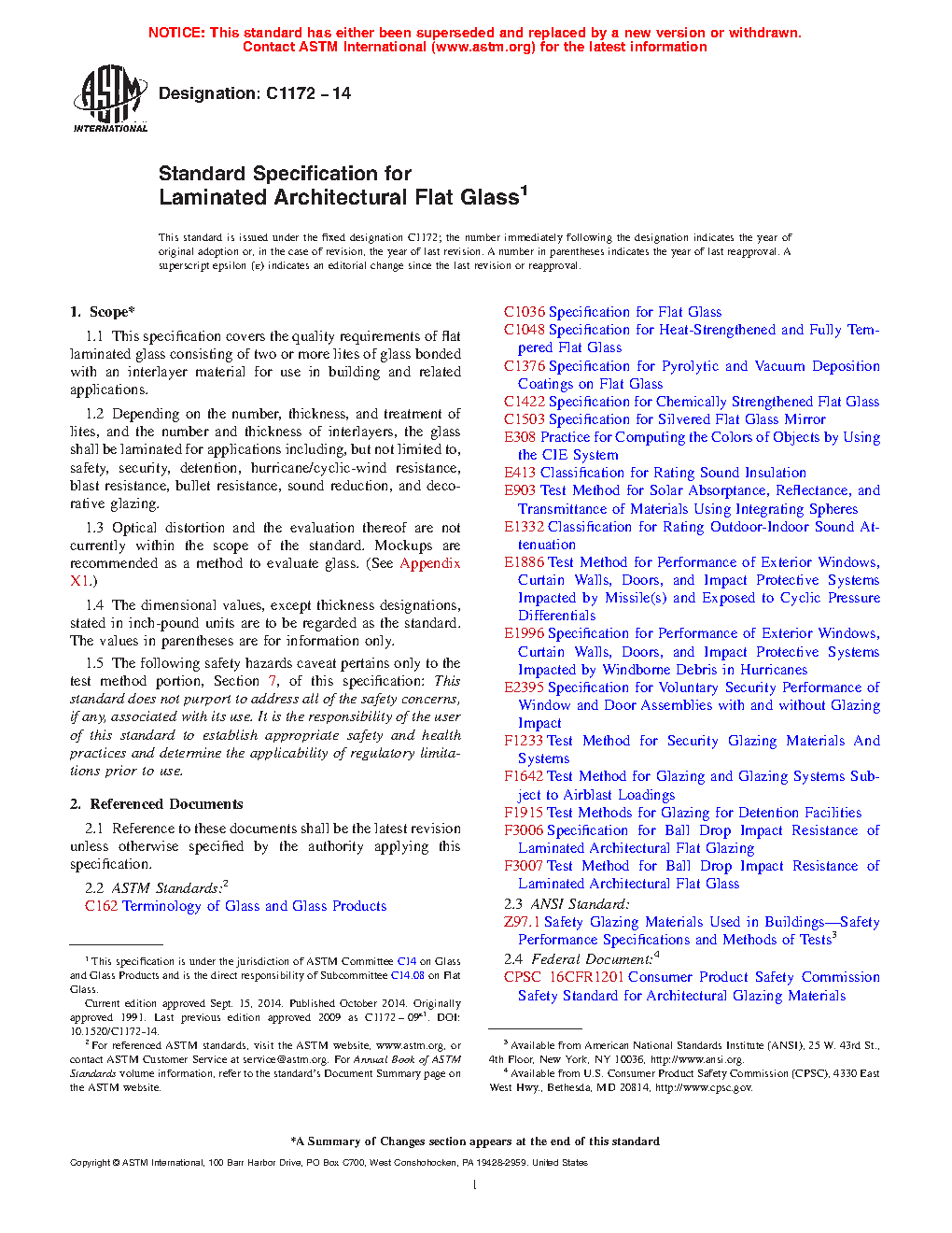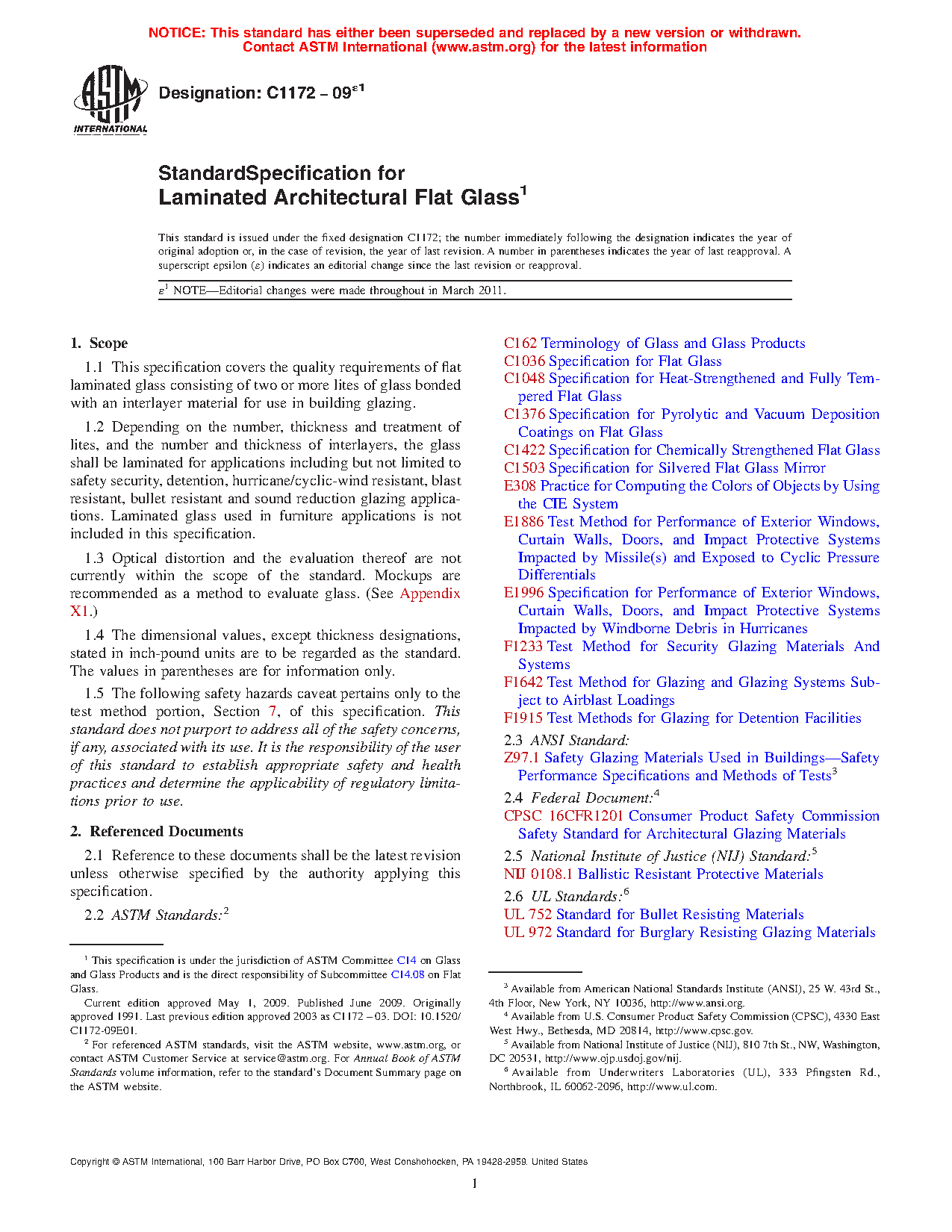 1.1 This specification covers the quality requirements of flat laminated glass consisting of two or more lites of glass bonded with an interlayer material for use in building and related applications.