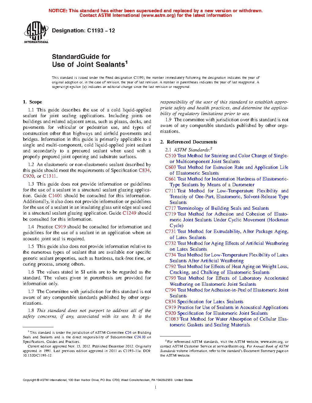 1.4 Practice C919 should be consulted for information and guidelines for the use of a sealant in an application where an acoustic joint seal is required.
