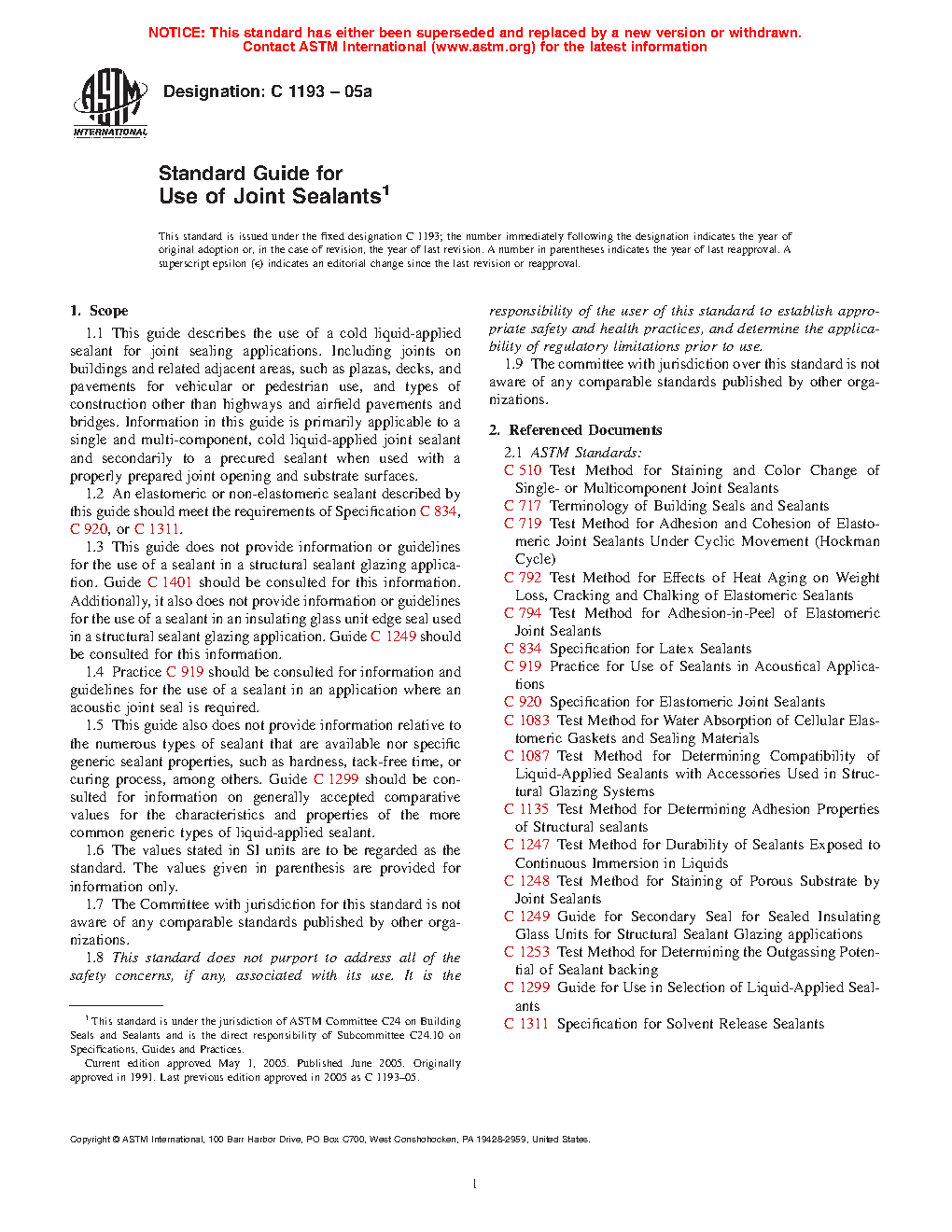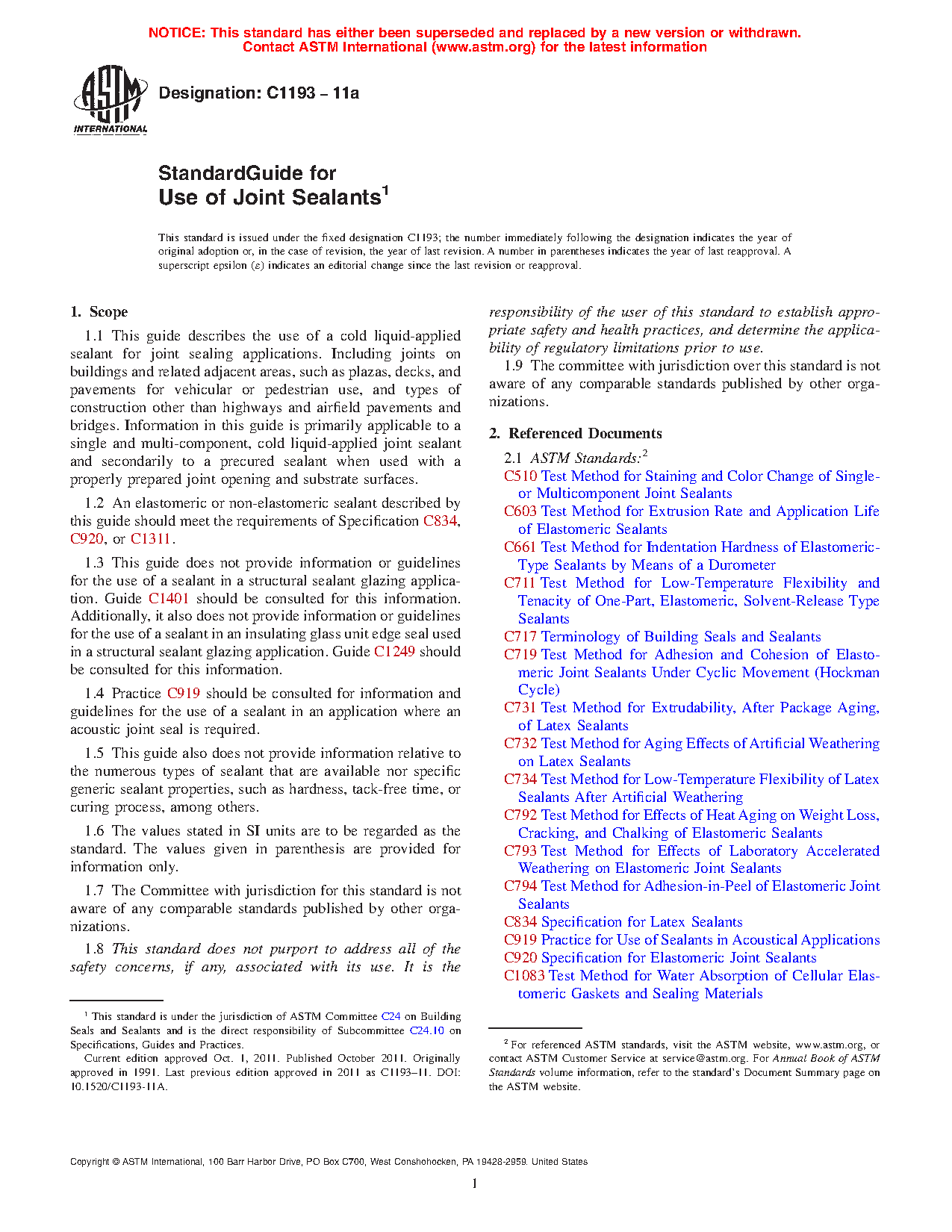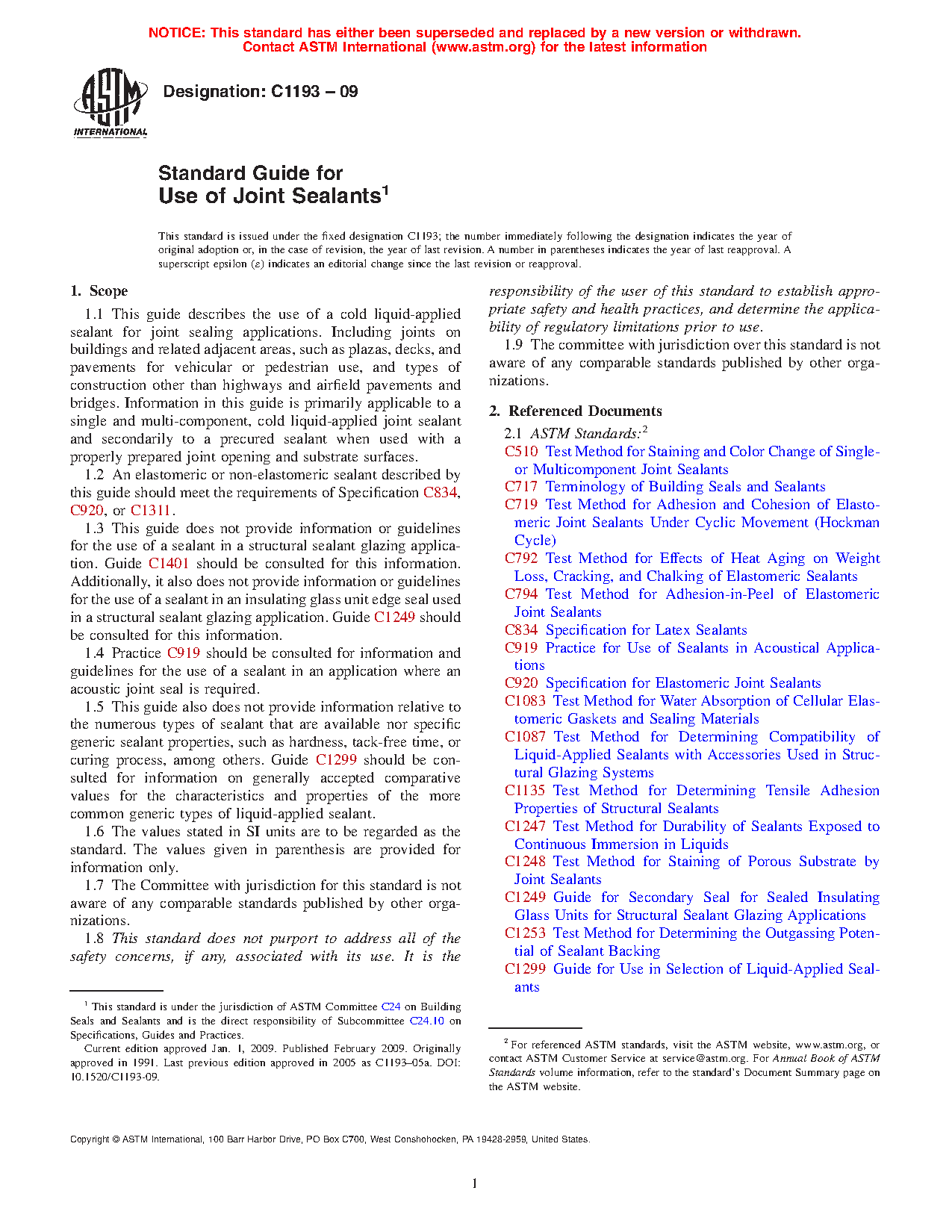 1.5 This guide also does not provide information relative to the numerous types of sealant that are available nor specific generic sealant properties, such as hardness, tack-free time, or curing process, among others.