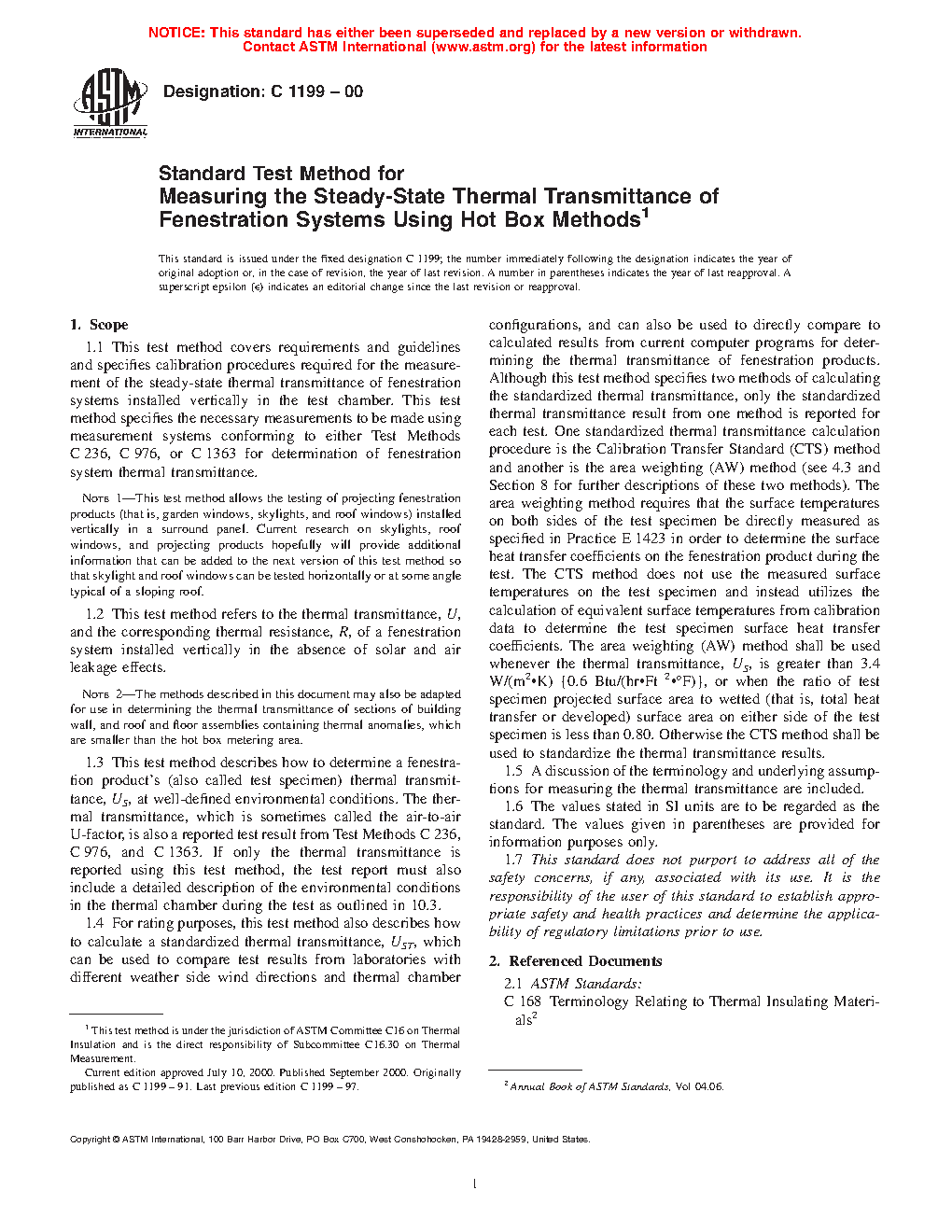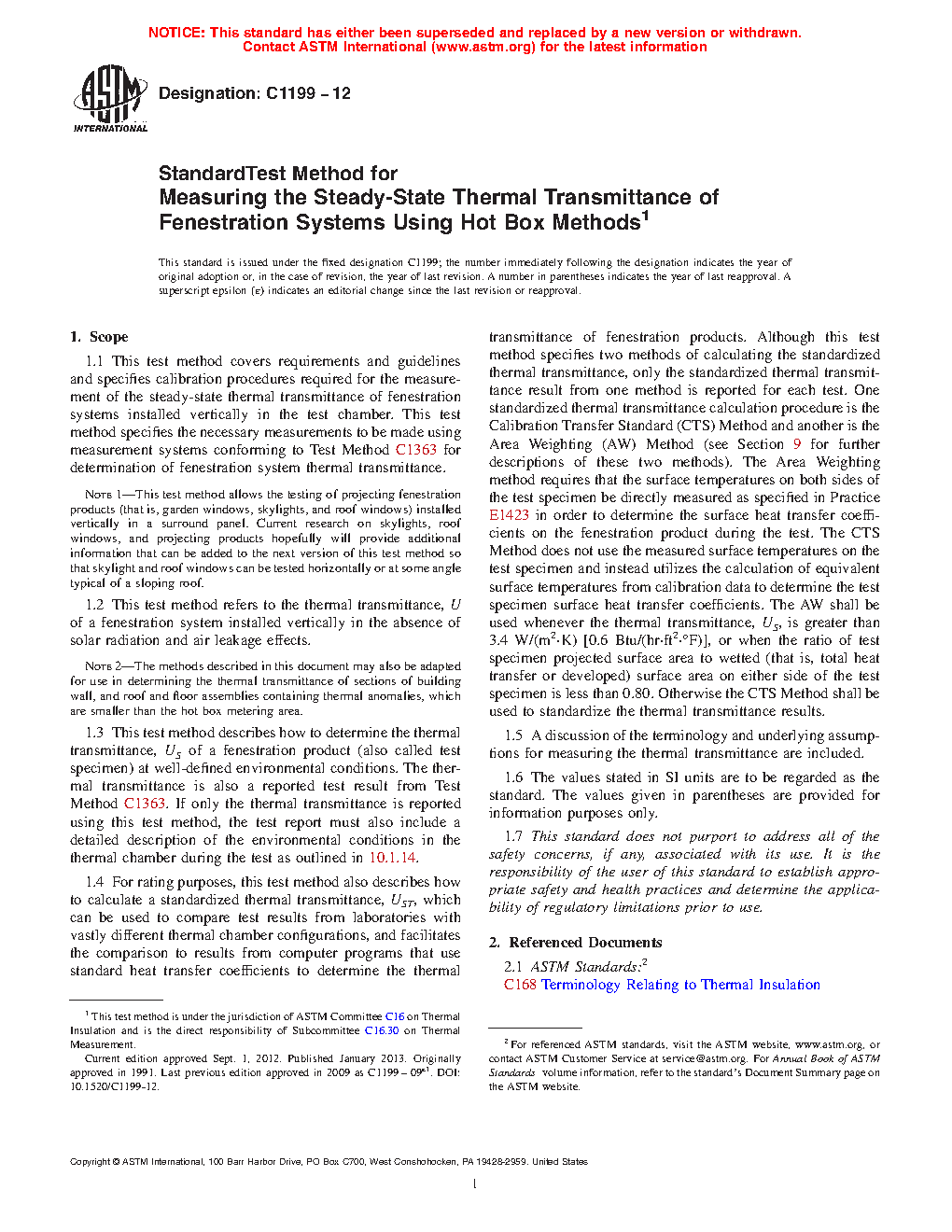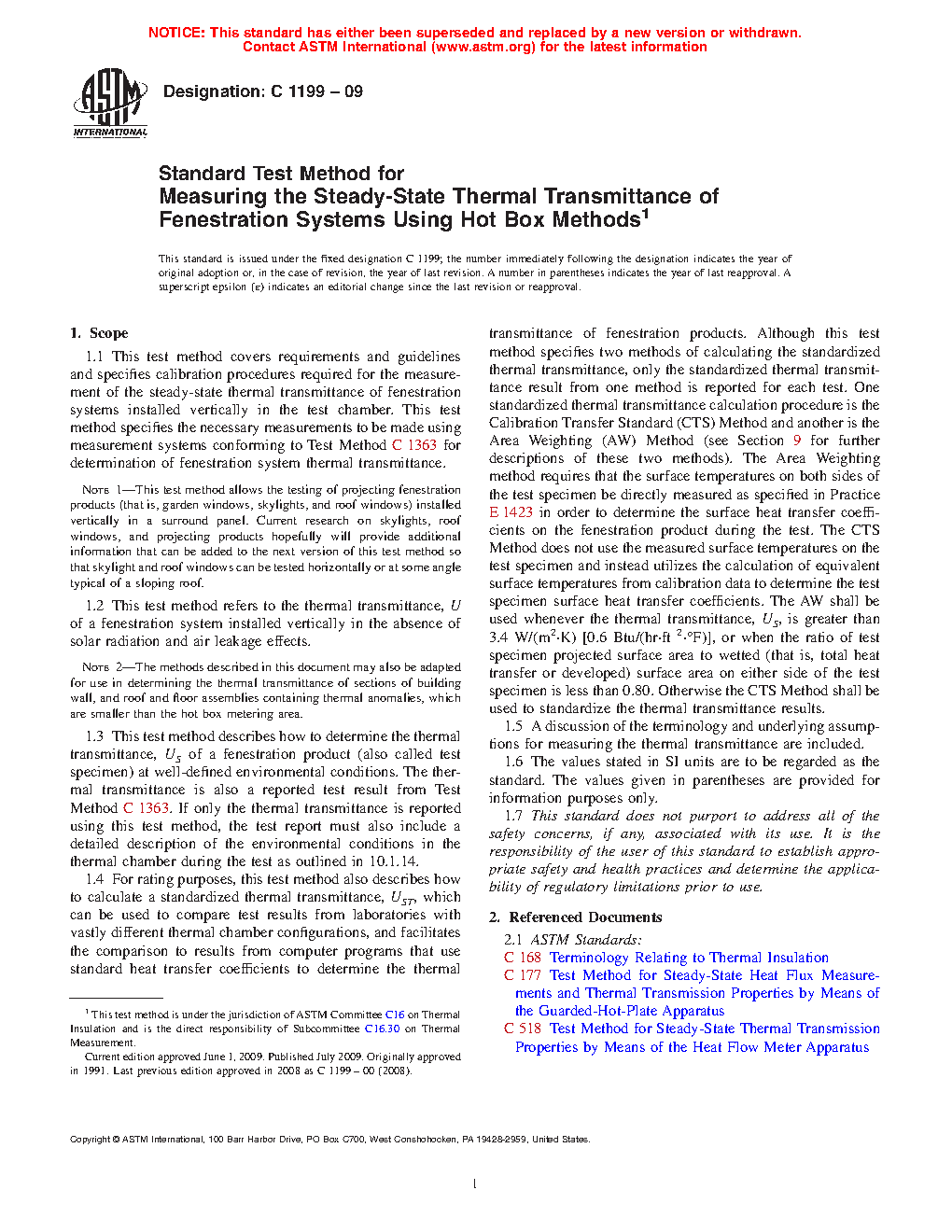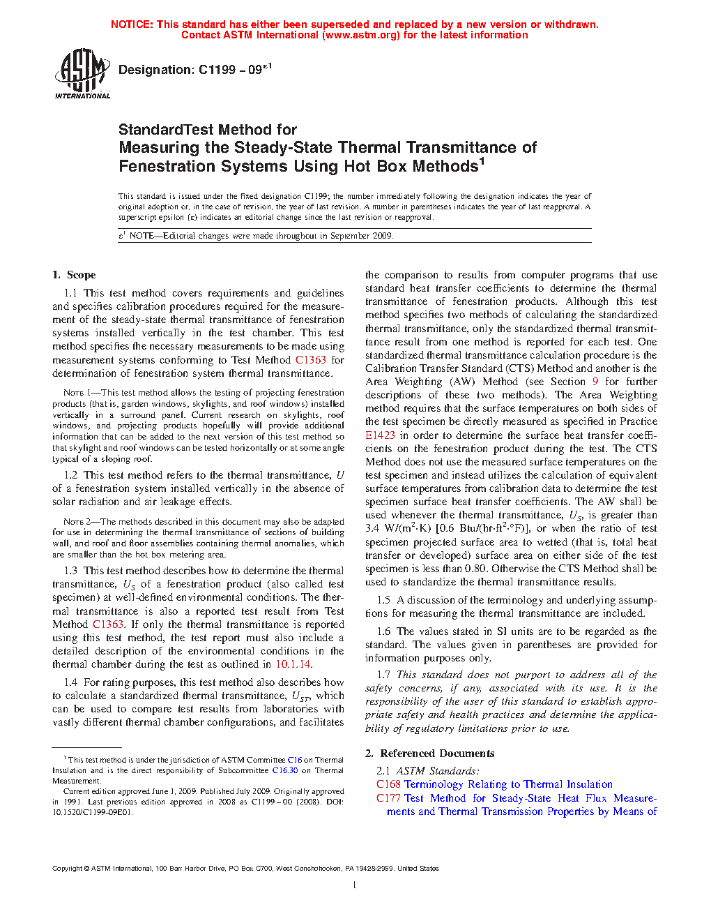 1.5 A discussion of the terminology and underlying assumptions for measuring the thermal transmittance are included.