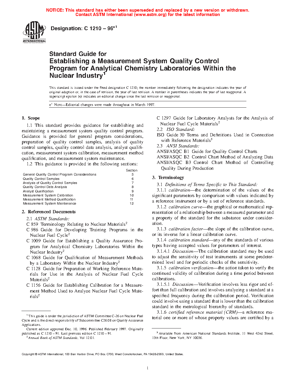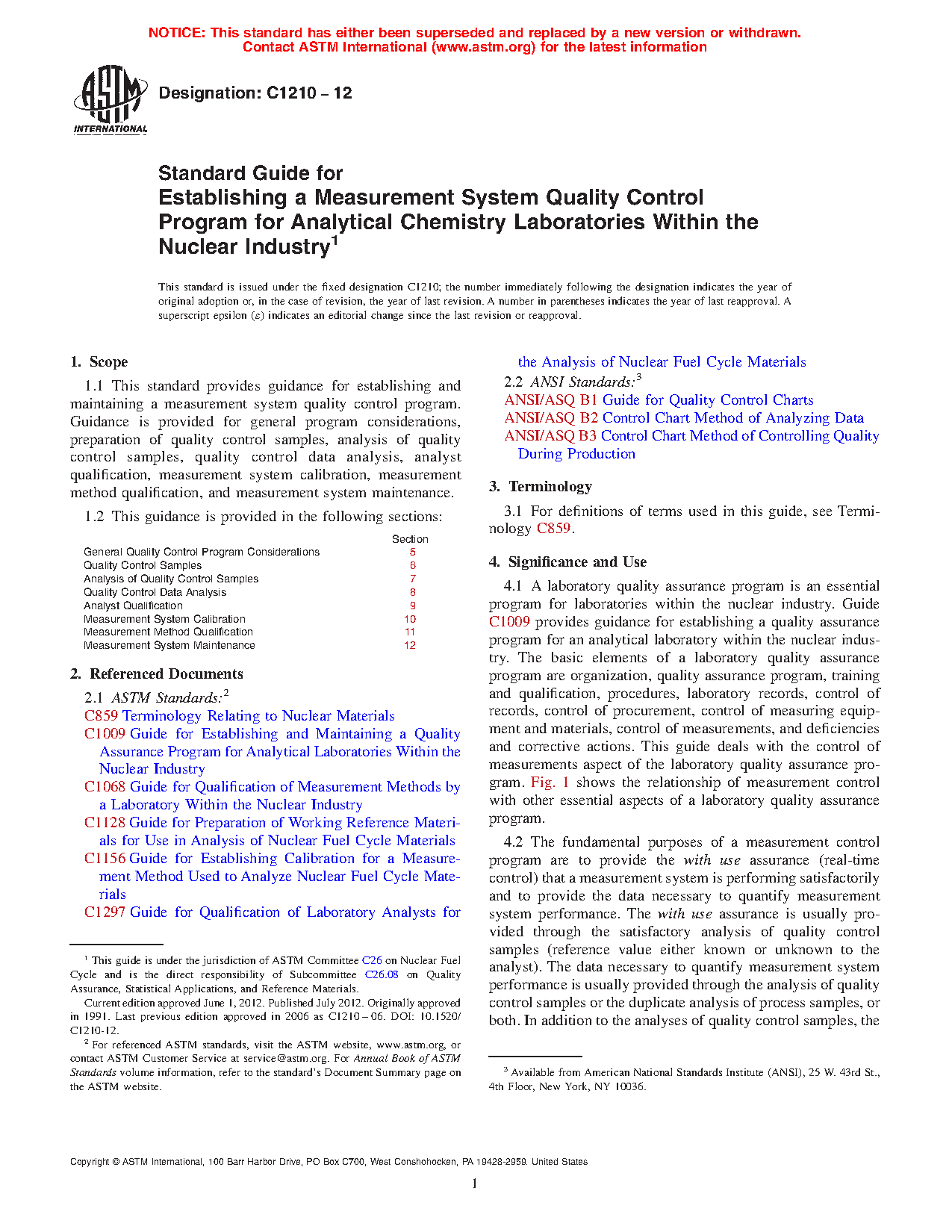 1.1 This guide provides guidance for establishing and maintaining a measurement system quality control program. Guidance is provided for general program considerations, preparation of quality control samples, analysis of quality control samples, quality control data analysis, analyst qualification, measurement system calibration, measurement method qualification, and measurement system maintenance.