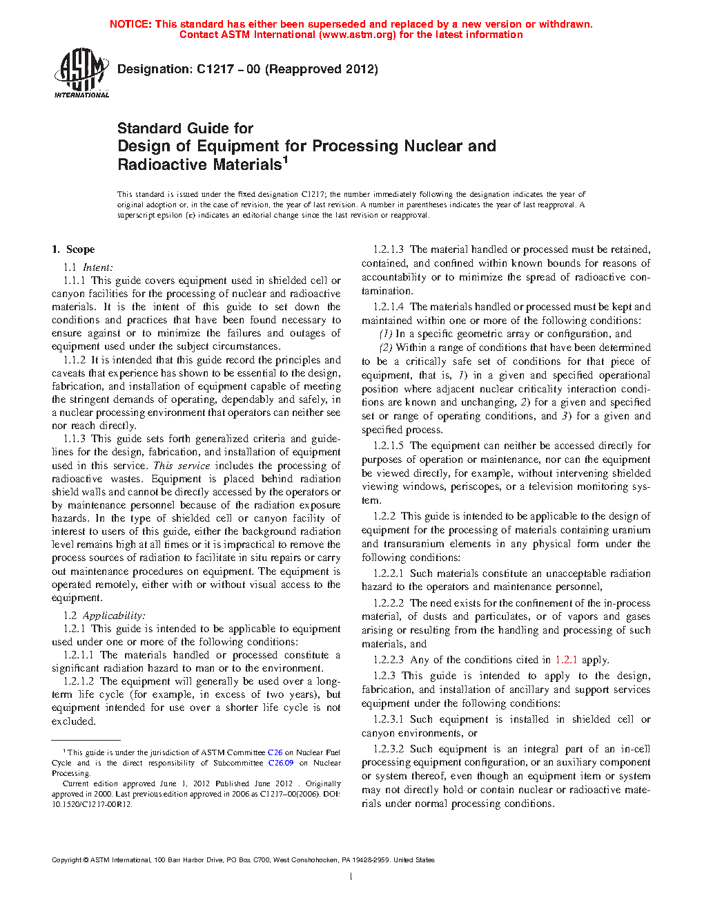 1.1.2 It is intended that this guide record the principles and caveats that experience has shown to be essential to the design, fabrication, and installation of equipment capable of meeting the stringent demands of operating, dependably and safely, in a nuclear processing environment that operators can neither see nor reach directly.