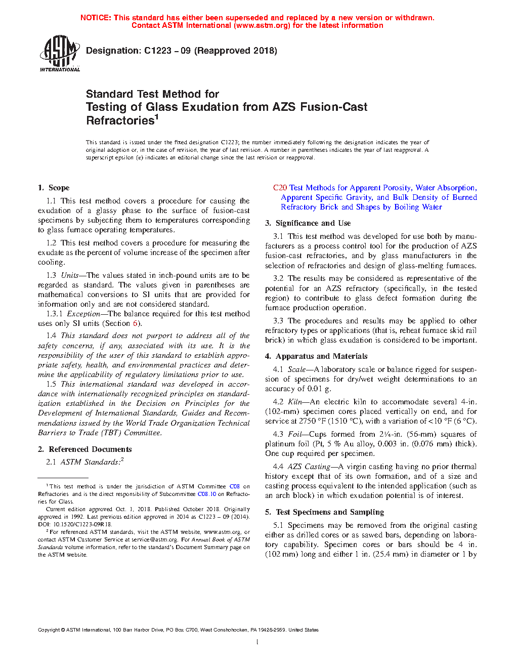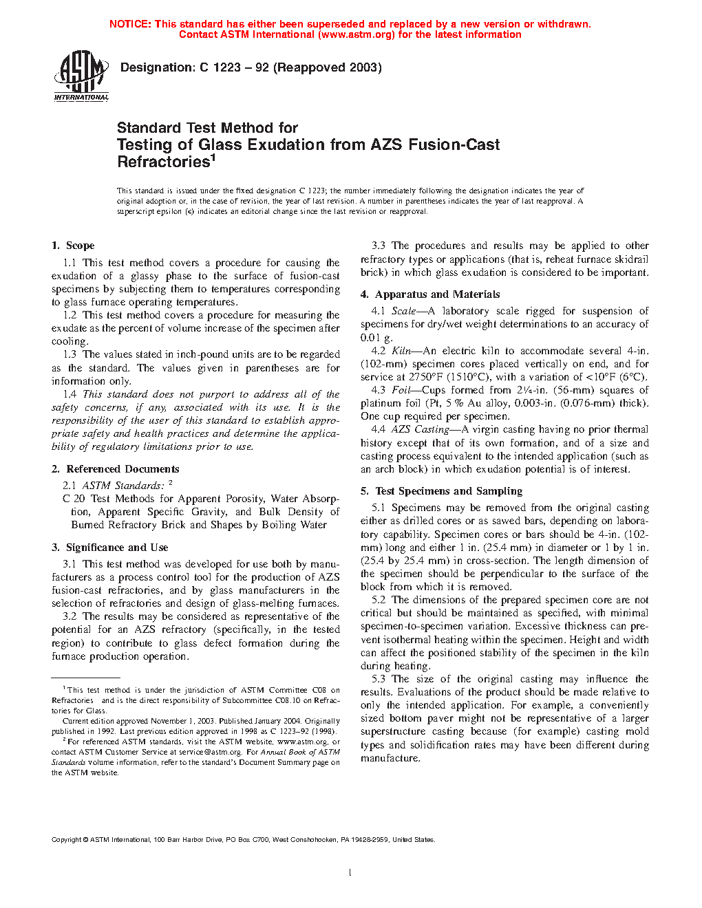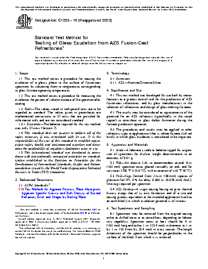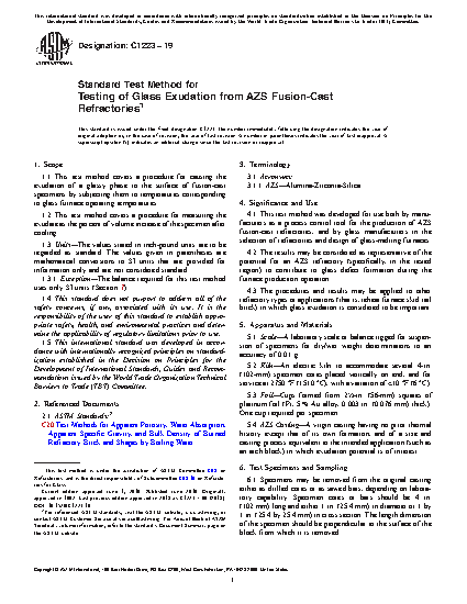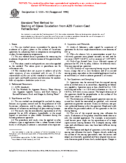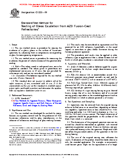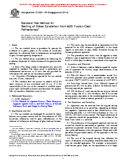 3.3 The procedures and results may be applied to other refractory types or applications (that is, reheat furnace skid rail brick) in which glass exudation is considered to be important.