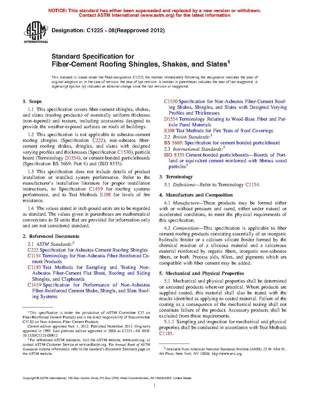 1.2 This specification is not applicable to asbestos-cement roofing shingles (Specification C222), particle board (Definitions D1554), or cement-bonded particleboards (Specification BS 5669: Part 4) and (ISO 8335).