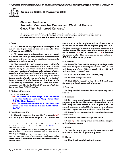 1.1 This practice covers preparation of test coupons to be used in tests of plant manufactured thin-section glass fiber reinforced concrete (GFRC).