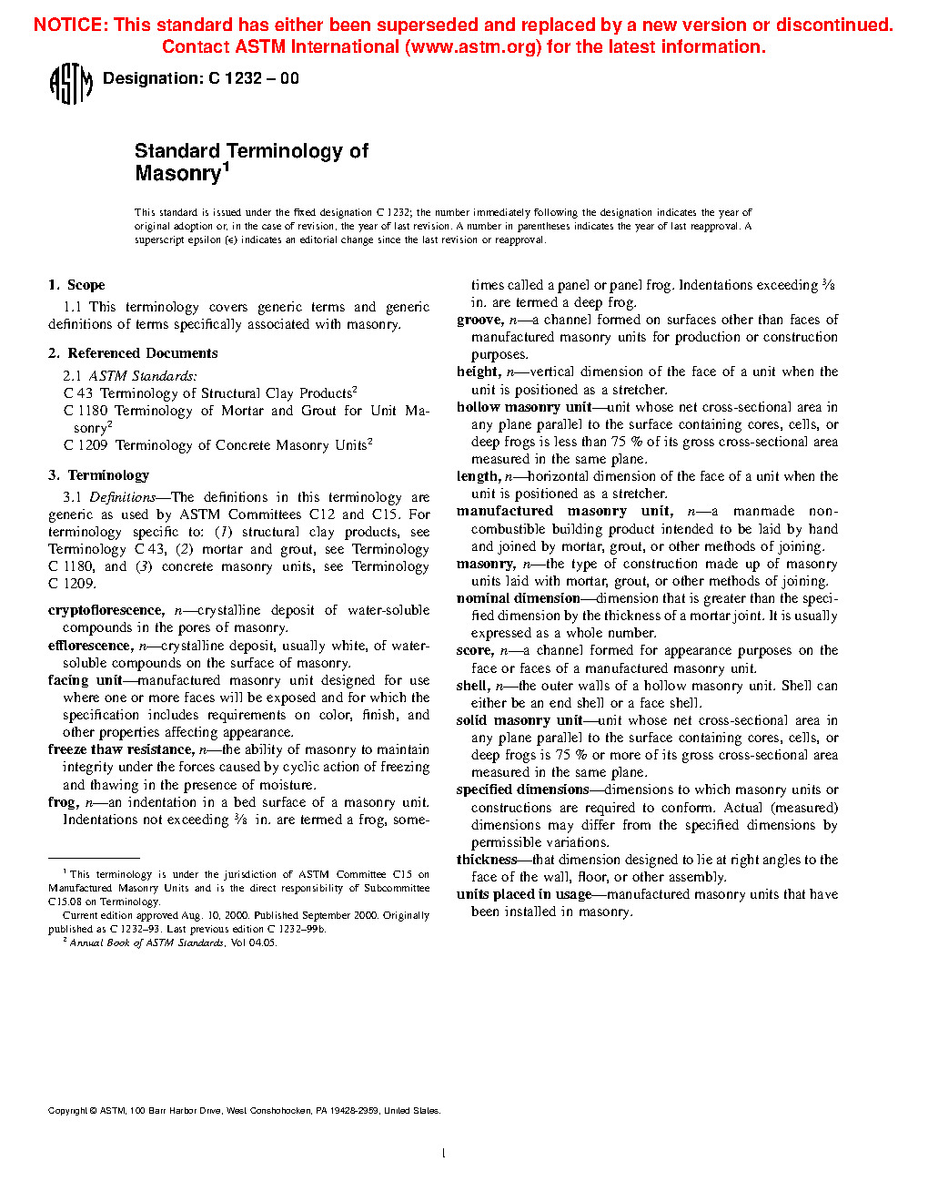 1.1 This standard incorporates terms and definitions of terms used in standards under the jurisdiction of Committee C15 on Masonry – Manufactured Masonry Units, Mortars, and Grouts.