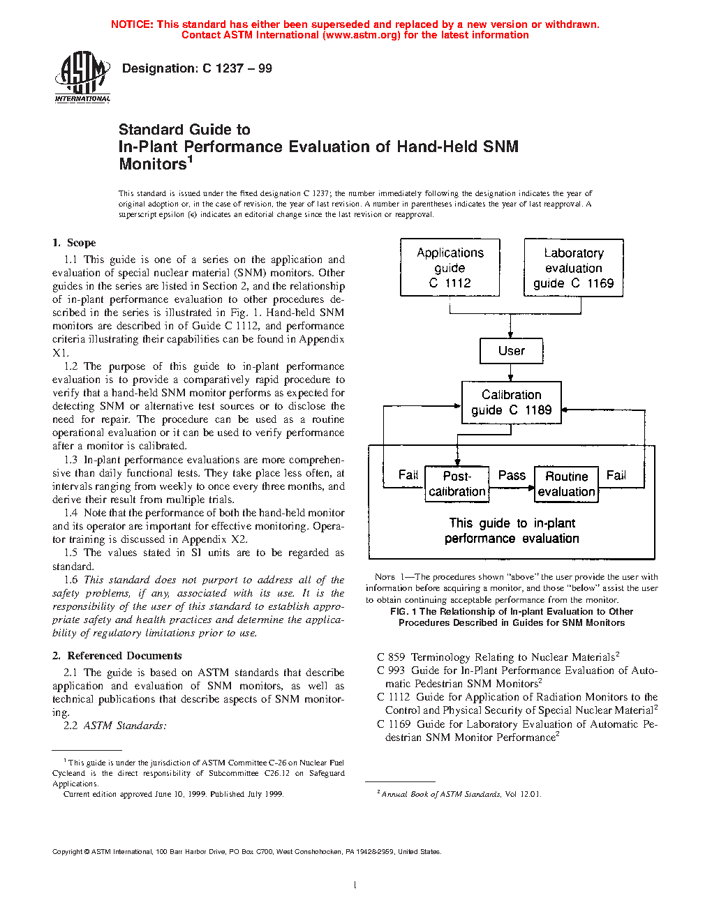 1.1 This guide is one of a series on the application and evaluation of special nuclear material (SNM) monitors. Other guides in the series are listed in Section 2, and the relationship of in-plant performance evaluation to other procedures described in the series is illustrated in Fig. 1. Hand-held SNM monitors are described in of Guide C1112, and performance criteria illustrating their capabilities can be found in Appendix X1.