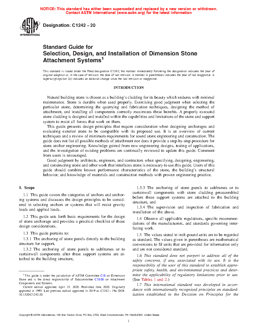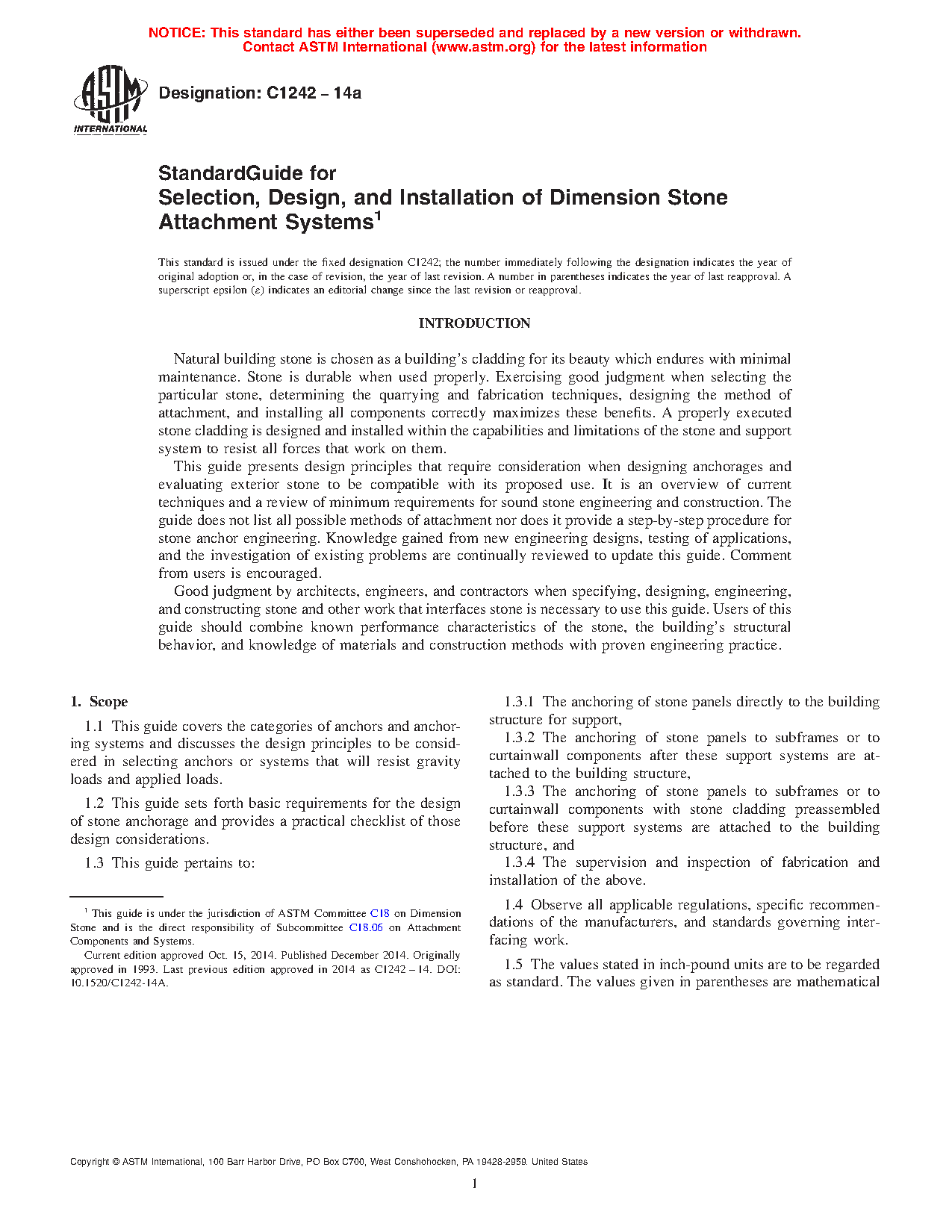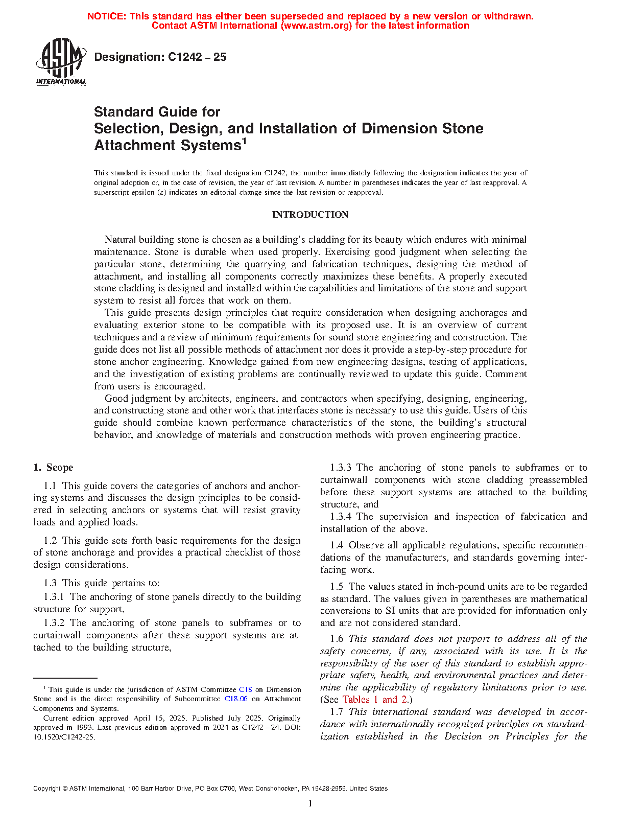 1.2 This guide sets forth basic requirements for the design of stone anchorage and provides a practical checklist of those design considerations.