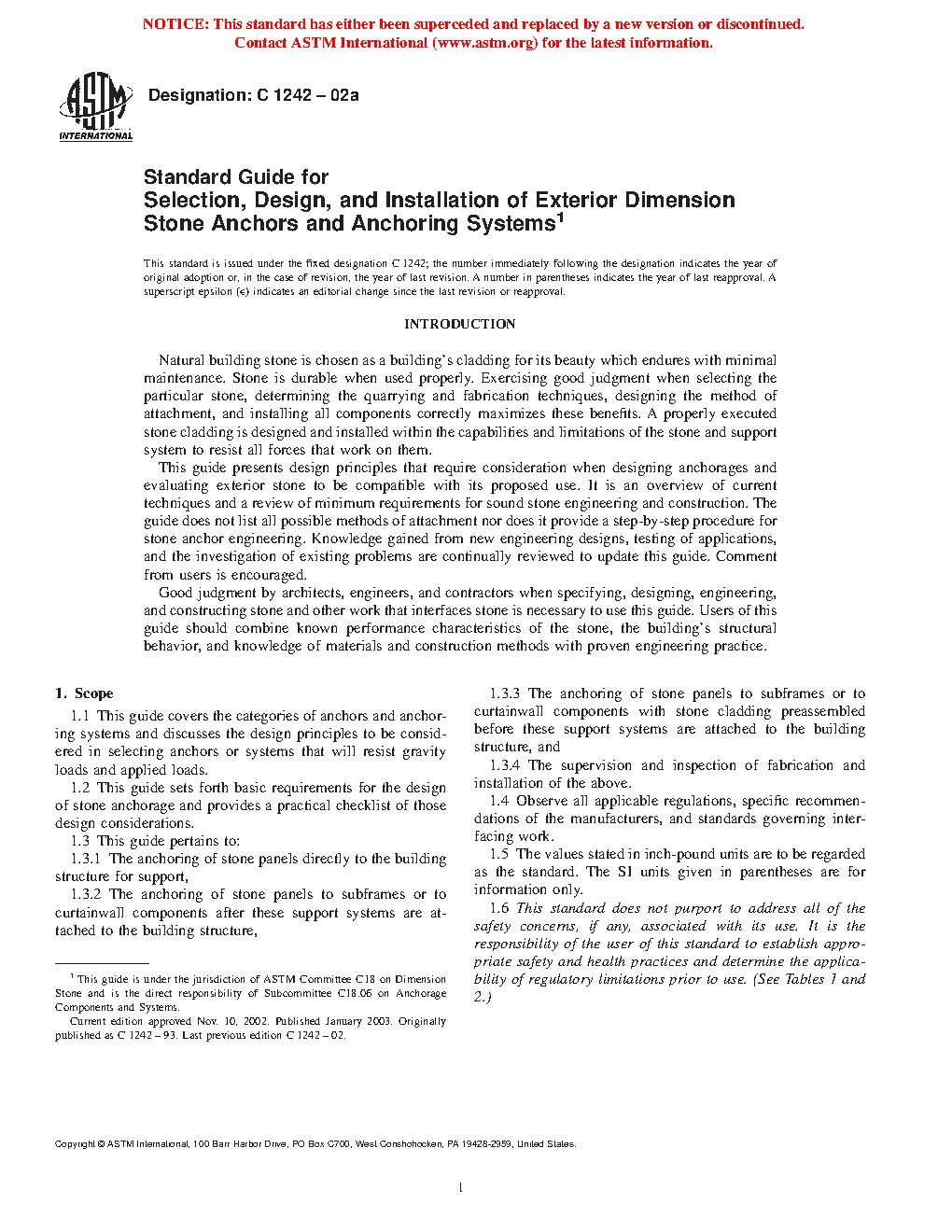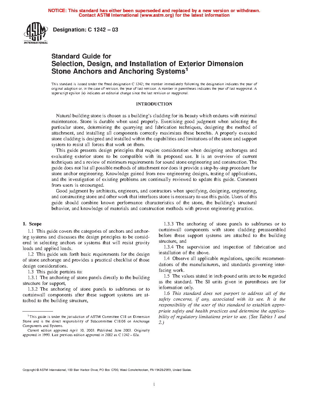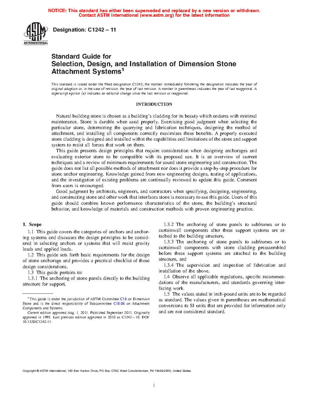 1.2 This guide sets forth basic requirements for the design of stone anchorage and provides a practical checklist of those design considerations.