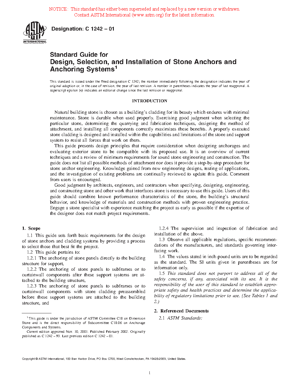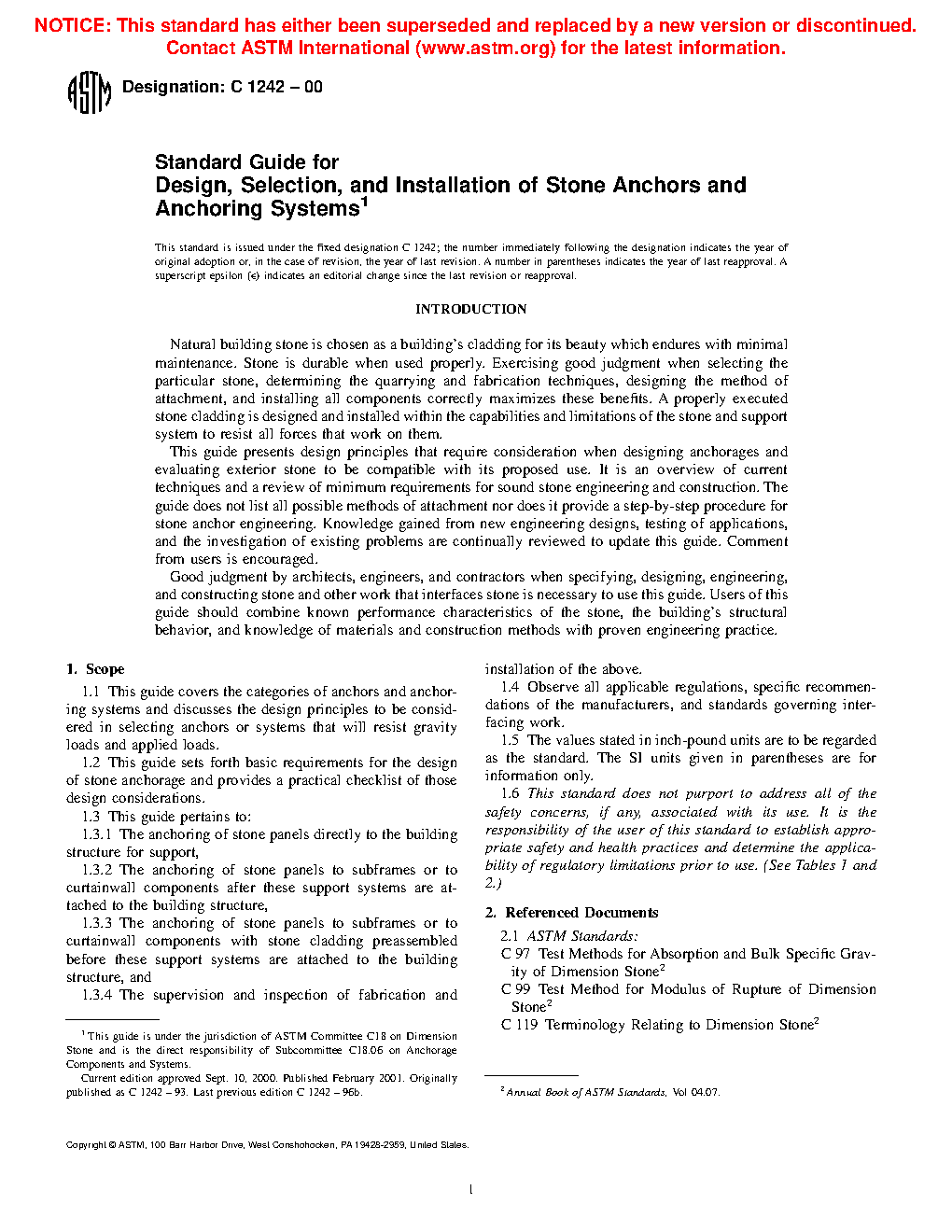 1.2 This guide sets forth basic requirements for the design of stone anchorage and provides a practical checklist of those design considerations.