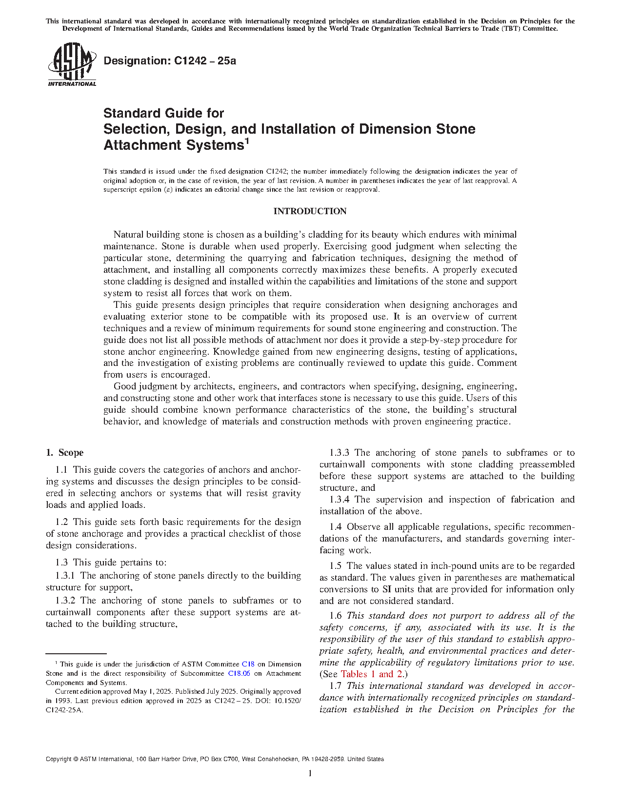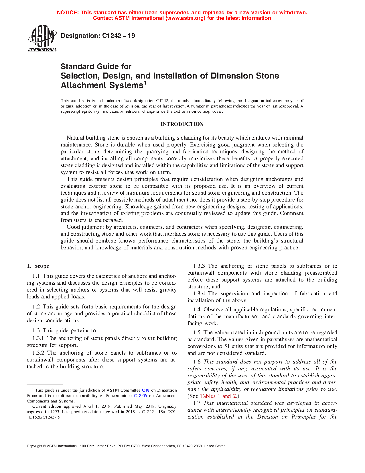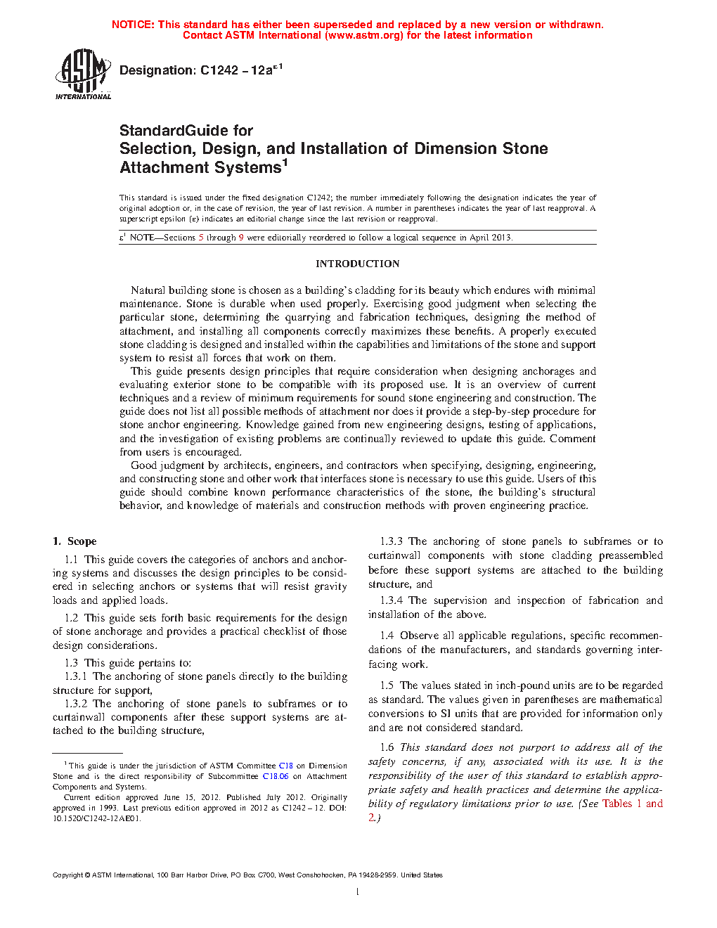 4.2 This guide is an industry standard for engineering design considerations, documentation, material considerations, anchor type applications, and installation workmanship to assist designers and installers to achieve a proper and durable stone cladding.