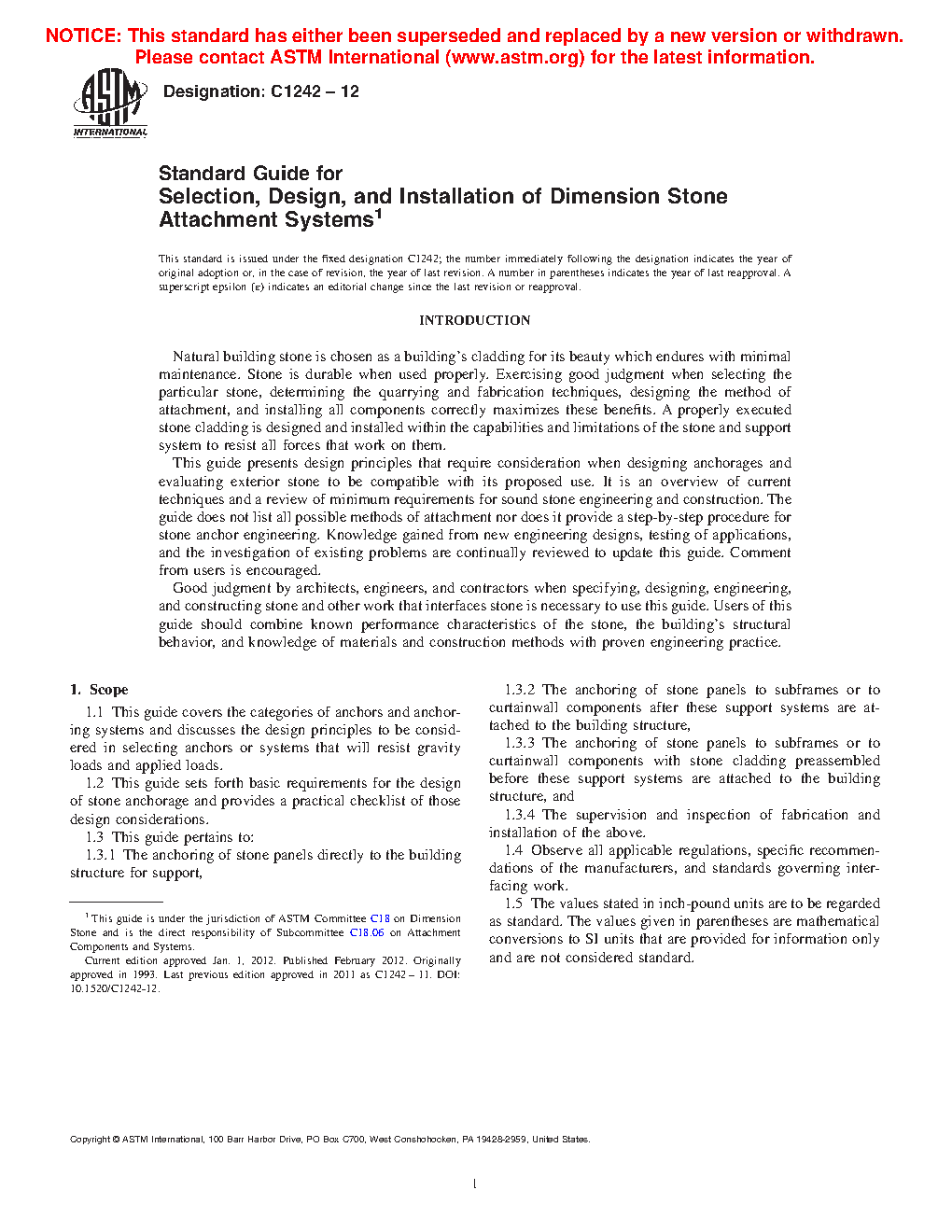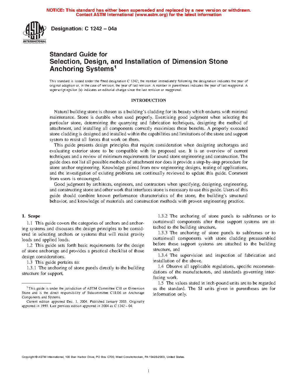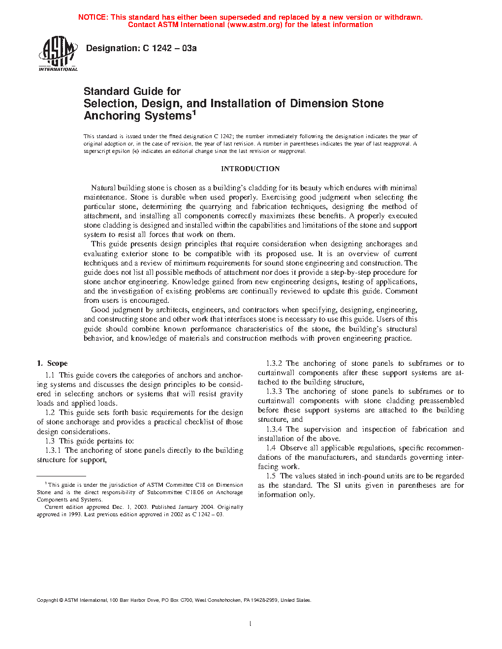 4.2 This guide is an industry standard for engineering design considerations, documentation, material considerations, anchor type applications, and installation workmanship to assist designers and installers to achieve a proper and durable stone cladding.