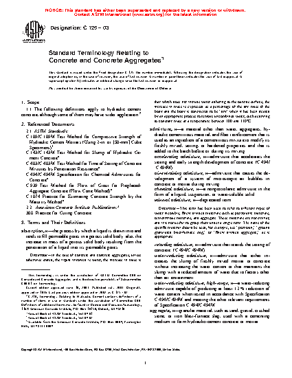 Standard Terminology Relating to Concrete and Concrete Aggregates