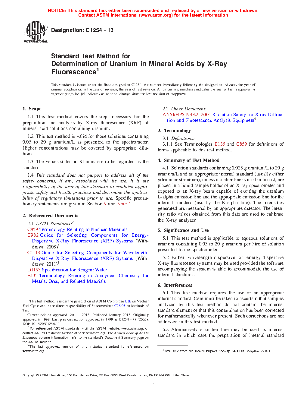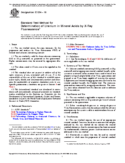 1.1 This test method covers the steps necessary for the preparation and analysis by X-ray fluorescence (XRF) of mineral acid solutions containing uranium.