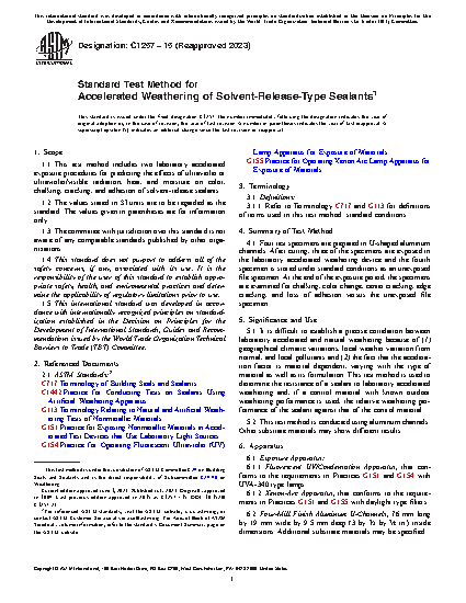 5.1 It is difficult to establish a precise correlation between laboratory accelerated and natural weathering because of (1) geographical climatic variations, local weather variation from normal, and local pollutants and (2) the fact that the acceleration factor is material dependent, varying with the type of material as well as its formulation. This test method is used to determine the resistance of a sealant to laboratory accelerated weathering and, if a control material with known outdoor weathering performance is used, the relative weathering performance of the sealant against that of the control material.