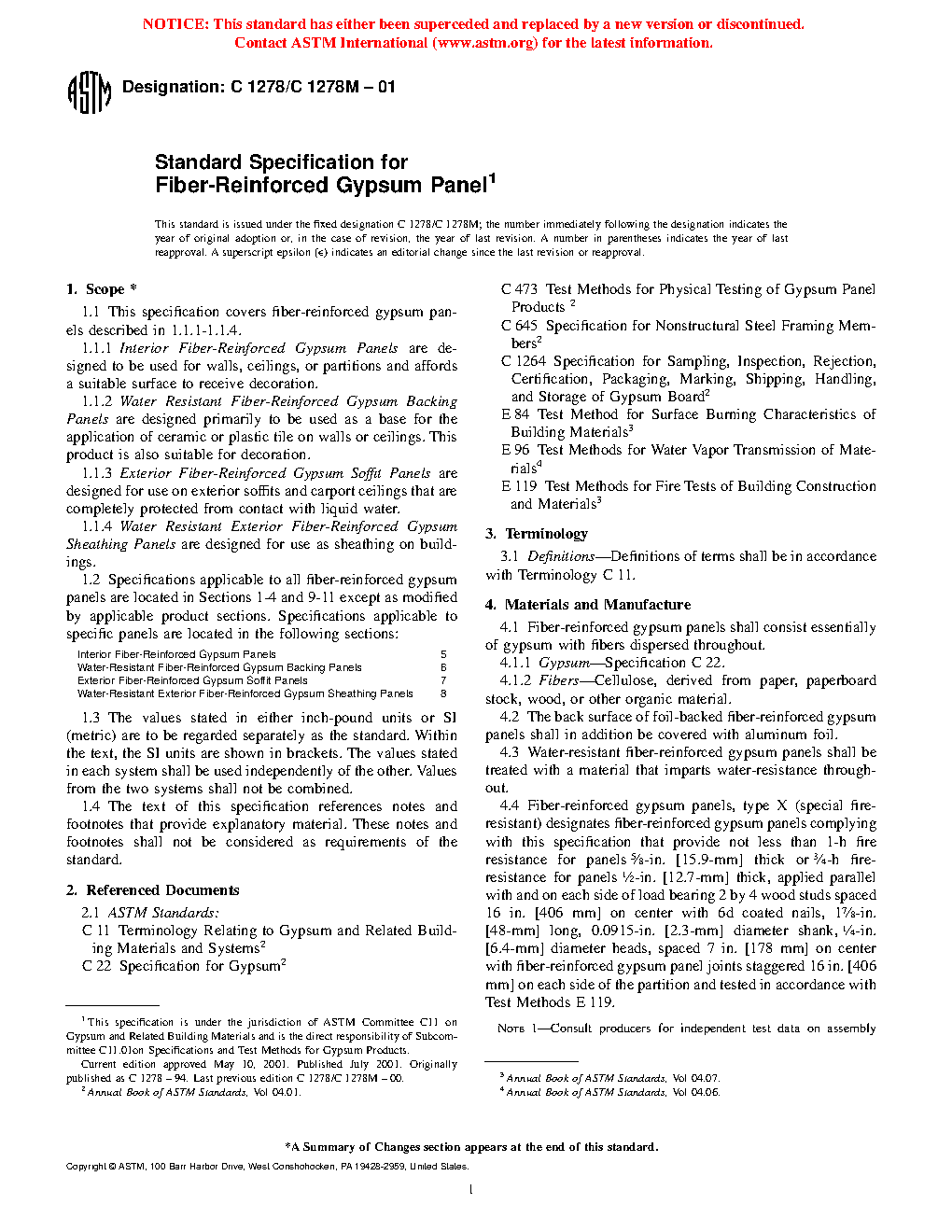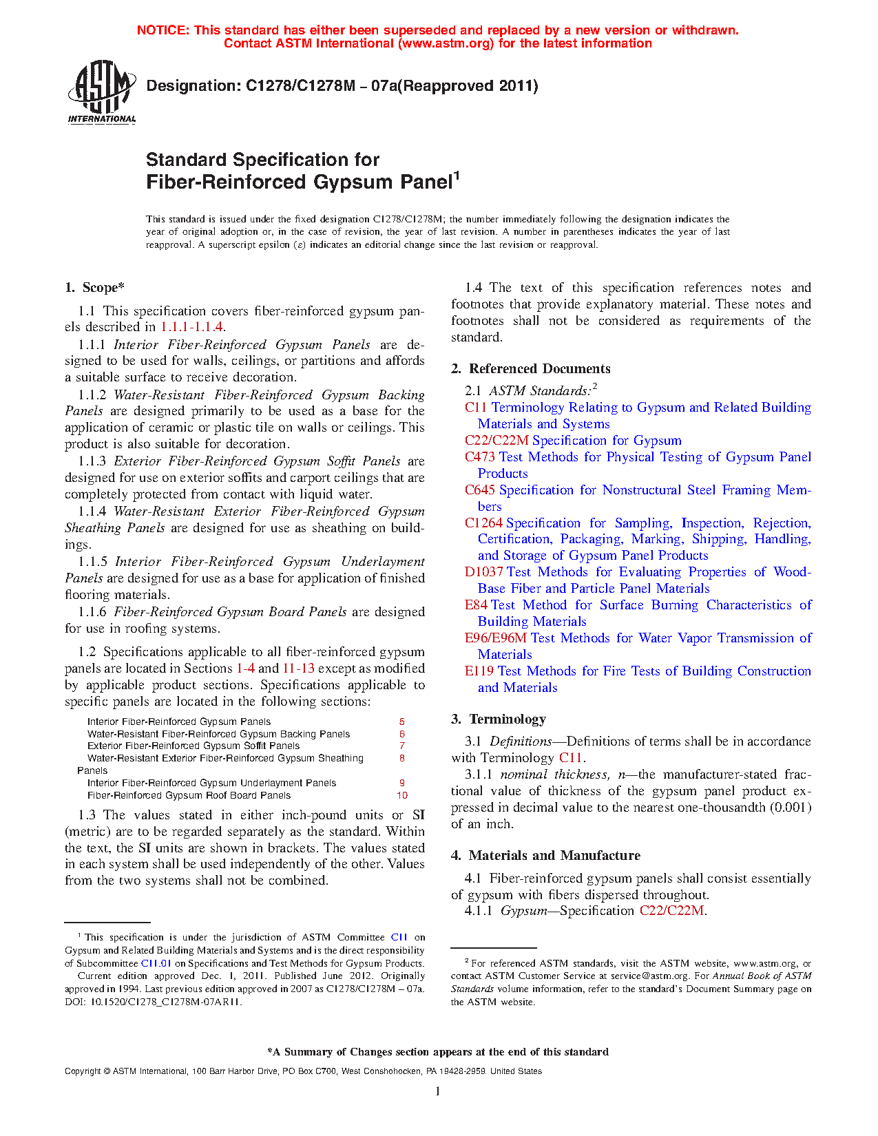 1.1 This specification covers fiber-reinforced gypsum panels described in 1.1.1 – 1.1.4.
